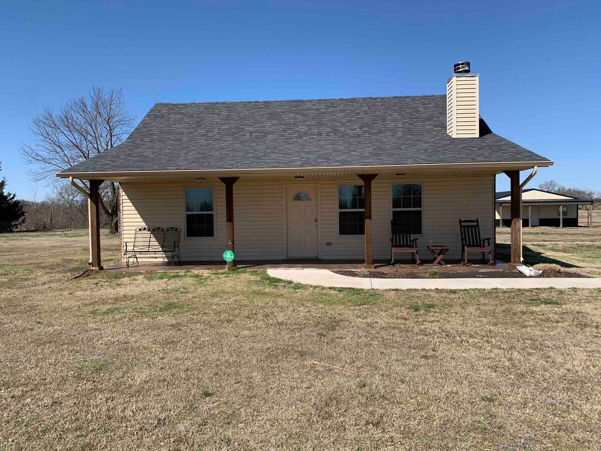 Thư giãn cùng cả gia đình tại địa điểm nghỉ dưỡng yên bình này. Ngôi nhà 3 phòng ngủ 2 phòng tắm này cho 6 người và nằm trên 20 mẫu đất hẻo lánh với những con đường đi bộ đường dài có rừng riêng và một cái ao được cho ăn mùa xuân rộng 3 mẫu Anh! Hãy tận hưởng việc khám phá một loại chỗ ở của chúng tôi và ngắm nhìn tất cả động vật hoang dã! Chúng tôi có sẵn một chiếc thuyền, vì vậy hãy mang theo cọc của bạn! Cửa hàng trò chơi của chúng tôi có bóng bàn, bóng rổ và các trò chơi khác. Nằm cách OKC 45 phút và Đại học OK 10 phút! NGHỈ NGƠI PHIÊU LƯU VUI CHƠI KHÁM PHÁ RÚT PHÍCH CẮM