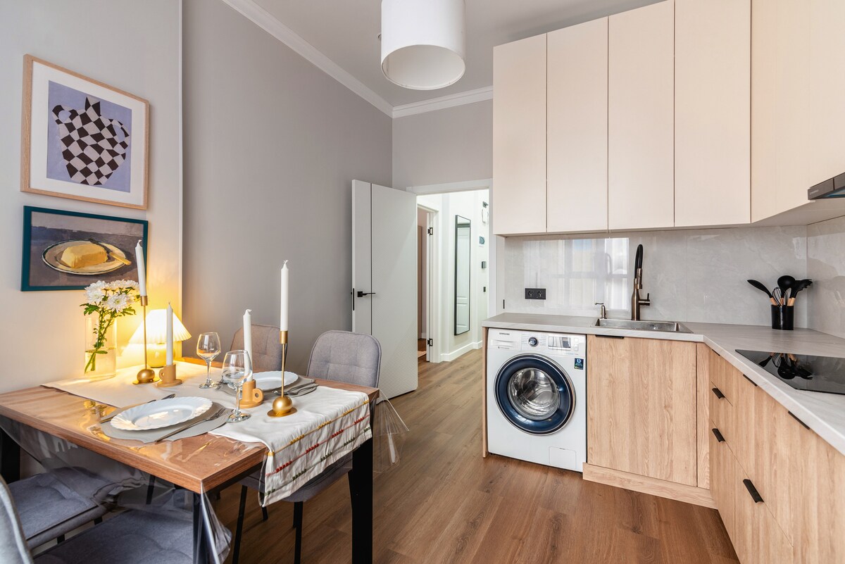 Chào mừng bạn đến với kỳ nghỉ mơ ước ngay trung tâm thành phố theo phong cách Japandi! Chỉ cách các điểm tham quan hàng đầu của thành phố vài bước chân - đặc biệt là khu vực Arbat chỉ cách đó vài phút đi bộ. Bên trong, không gian tự hào có tông màu gỗ ấm áp, trang trí trang nhã và các tiện nghi hiện đại bao gồm máy rửa chén, máy giặt và máy sấy trong căn hộ, Wi-Fi tốc độ cao, v.v. Bước ra ngoài và khám phá một khu phố sôi động với nhiều nhà hàng với nhiều món ăn đa dạng. Để mua sắm, một trung tâm mua sắm lớn “Mega Park” nằm ngay bên kia đường.