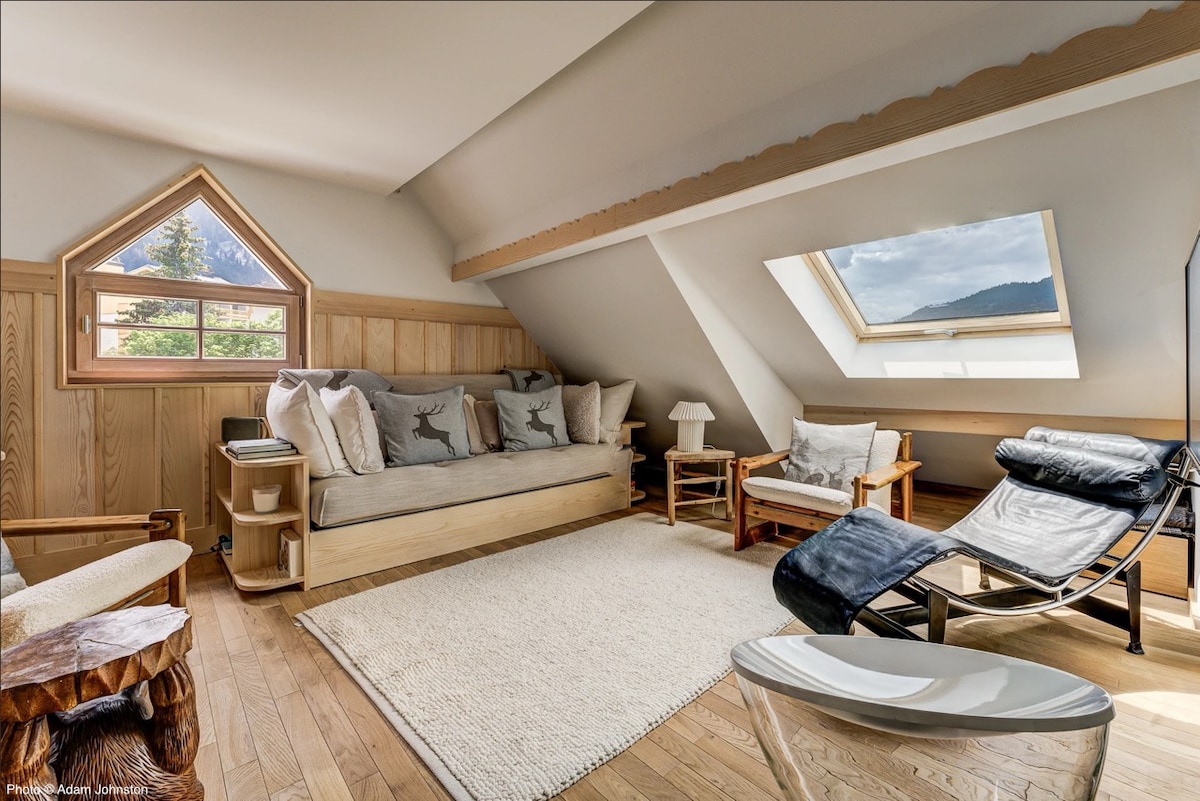 Nằm dưới chân khu trượt tuyết Mont d 'Arbois, căn hộ nép mình trên đỉnh sườn núi Thelevey với tầm nhìn toàn cảnh tuyệt vời, lối đi dành cho người đi bộ đến thang máy trượt tuyết, trường dạy trượt tuyết và Golf of the Mont d'Arbois và Quần vợt của Câu lạc bộ Maeva. Đi bộ xuống ngôi làng bên cạnh chemin du Calvaire tuyệt đẹp. Thư giãn và cảm nhận sự thoải mái của căn hộ rộng rãi và được tu sửa hoàn toàn này ở tầng trên cùng của Chalet Griffon quyến rũ.