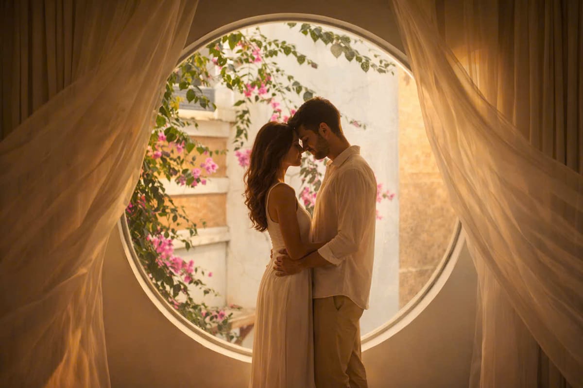 Một đôi trên đỉnh đồi sáng | Tầm nhìn ra bầu trời và núi