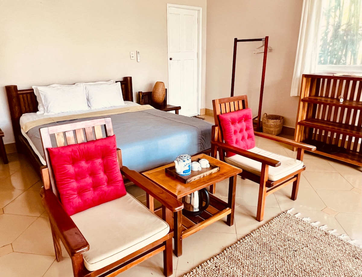 You won’t want to leave our charming little hideaway. Part of Bamboo Cottages, a small family-run boutique bed & breakfast, our Seaview Rooms are reasonably priced so you can relax & stay awhile. These rooms are literally about 35 steps to the beach, with their own little garden & partial sea views. Rooms have A/C, Wifi, & open-air bathrooms. Included are breakfast on the beach, unlimited drinking water & 2 hours use of our kayaks & snorkeling masks. Pls see our other listings for more options.