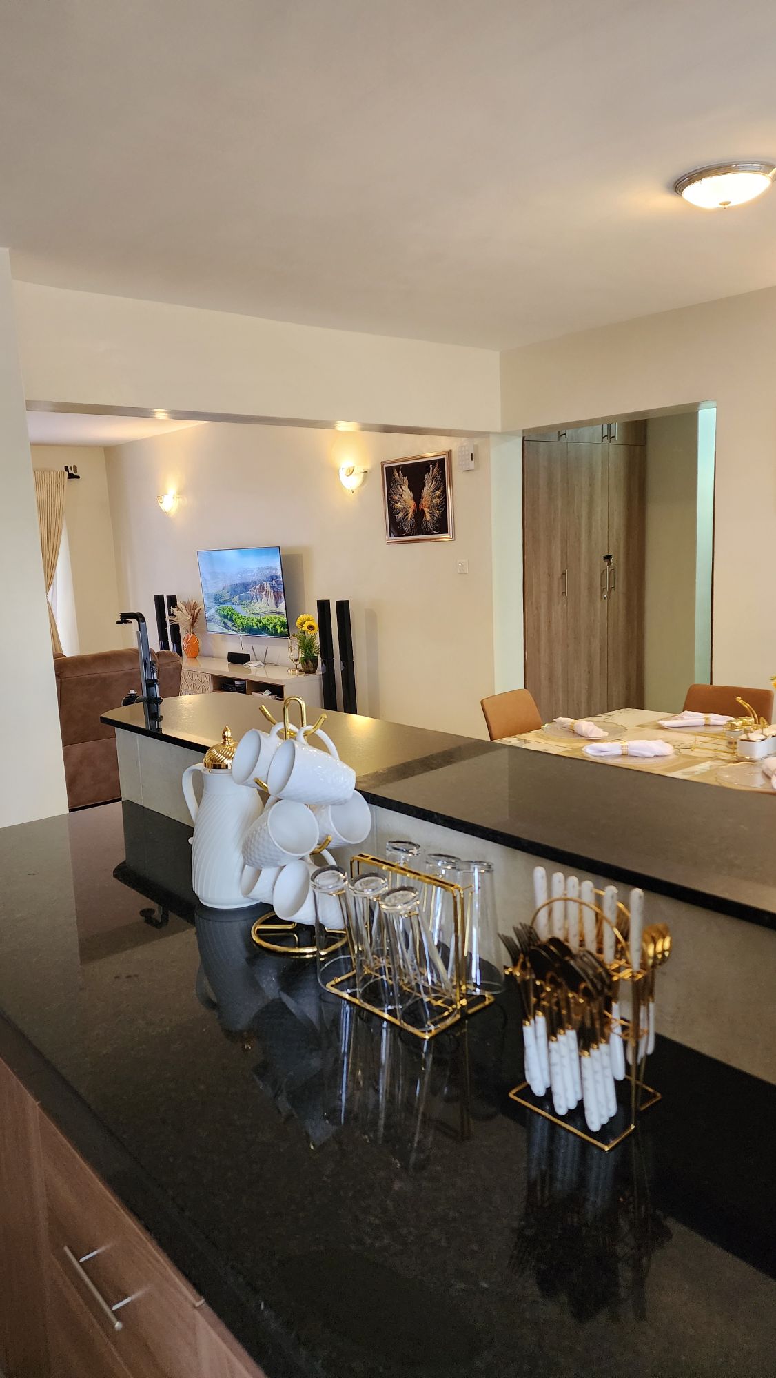 Những ngôi nhà nằm ở khu Naka Eastate sang trọng ở nakuru. Nó có tầm nhìn toàn cảnh ra công viên quốc gia Nakuru từ cả ban công phía trước và phía sau. Nó có thang máy hoạt động mọi lúc, đủ chỗ đỗ xe và rất an toàn. Nhà có phòng giặt ủi, phòng tắm dành cho khách, bếp không gian mở với ghế đẩu. Nhà phù hợp với khách ở dài hạn