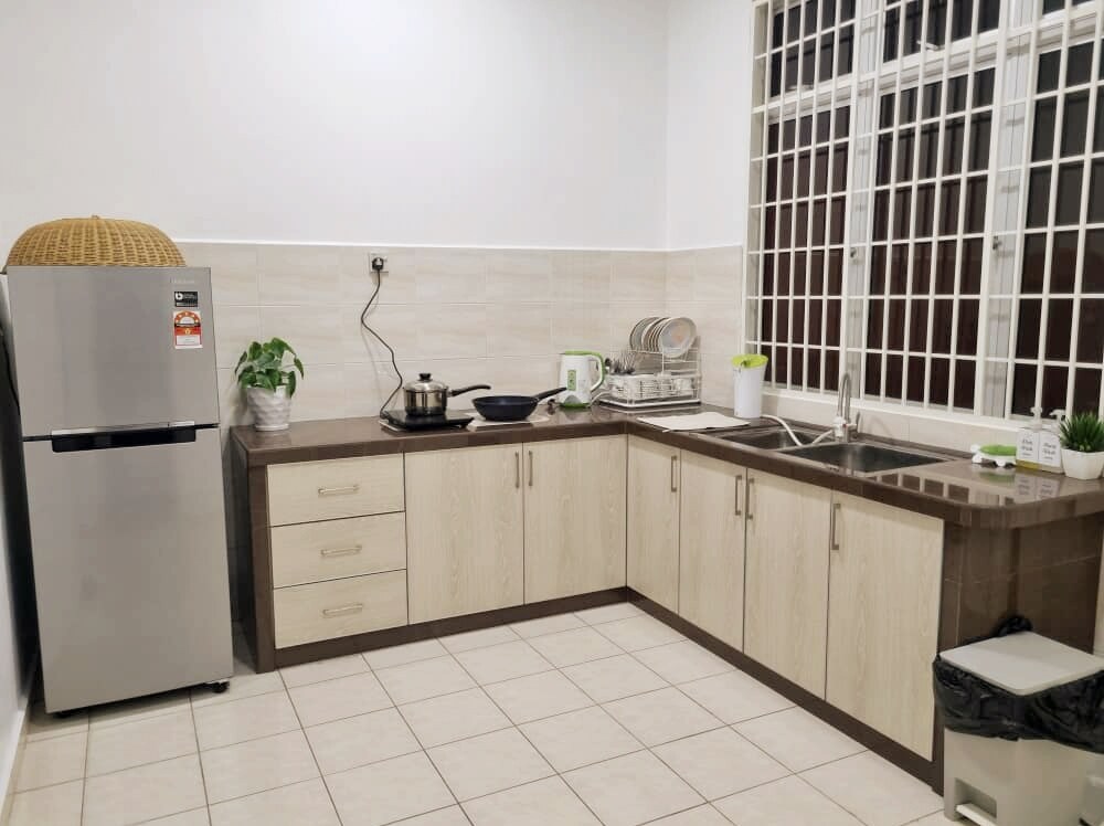 Nhà một tầng bán độc lập 3 phòng ngủ 🛏 Phòng ngủ chính: Giường cỡ Queen kèm phòng tắm + 2 Sejadah (thảm cầu nguyện) 🛏 Phòng 2: Giường Queen 🛏Phòng 3: Giường siêu đơn (Phòng 2 & 3 dùng chung phòng tắm) 👨👩👧 Thoải mái cho 5, tối đa 8 người 🛋️ Nệm trải sàn bổ sung được cung cấp theo yêu cầu (áp dụng phụ) ❄️ Air-Con trong tất cả các phòng ngủ + khu vực sinh hoạt và ăn uống Wifi 📶 miễn phí 🍳 Bếp: tủ lạnh, bếp từ, máy nướng bánh mì, bình lọc nước (nóng/lạnh), nồi cơm điện, máy sấy tóc, bàn ủi và cầu ủi