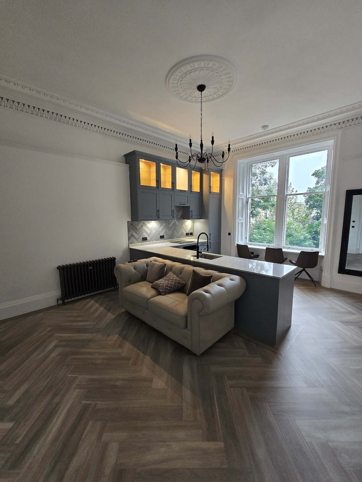 ✨ Căn hộ Edinburgh có cửa chính phong cách, ở vị trí thuận tiện ở phía nam, dễ dàng đi đến trung tâm thành phố. Hai phòng ngủ — phòng ngủ chính siêu lớn sang trọng và phòng đôi ấm cúng. Phòng khách thanh lịch có cửa sổ lồi với gờ trần hoa mỹ, hoa văn hình hoa hồng ở giữa trần và lò sưởi trang trí, sàn gỗ họa tiết chữ V hoàn toàn mới và bếp đầy đủ tiện nghi đầy phong cách. Đã bao gồm Thuế du khách (từ mùa hè năm 2026). Bãi đỗ xe công cộng miễn phí cách đó khoảng 10 phút đi bộ.