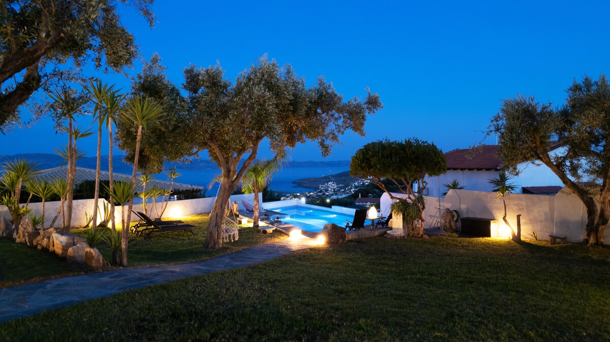Seafront Hillside Villa with Outdoor Pool