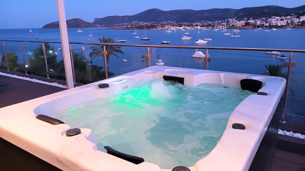 New modernly equipped penthouse in front of the sea in the resort town of Porto Rafti in Attica, 20min. drive from Athens airport. Apartment of 120 sq.m with a huge veranda with amazing view of the sea. Jacuzzi and huge sofas on the veranda, as well as the exquisite design of the house will allow you to relax and enjoy your staying with us. The apartment is located in the central part of the resort and go directly to the promenade with many cafes, restaurants and shops for your evening stroll.