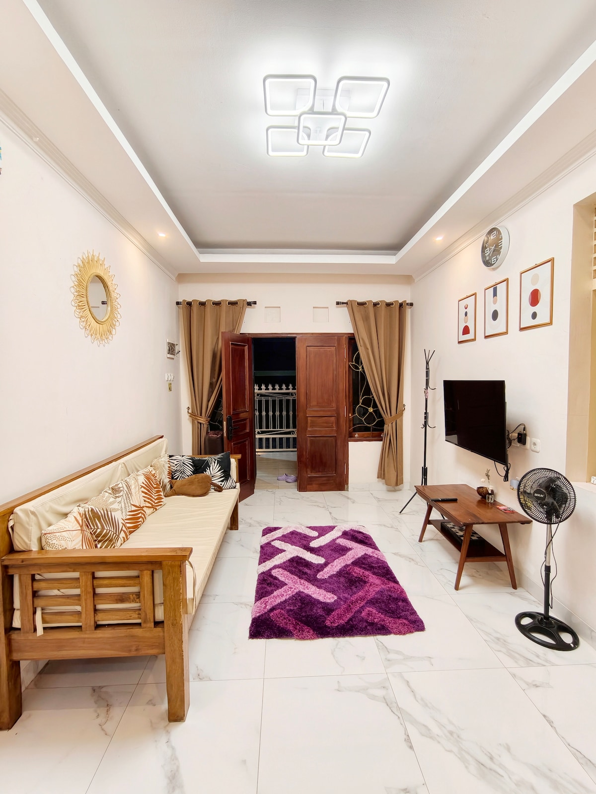 🏡 Kay House 3 – Chỗ ở thoải mái, hiện đại tại Jogja ✨ Phong cách tối giản, đầy đủ tiện nghi ✨ Áp dụng một khái niệm căn hộ trong một ngôi nhà có đất: đơn giản, sạch sẽ, nhỏ gọn, hiện đại. Tận hưởng 2 giường queen, Wi-Fi, điều hòa không khí, TV thông minh 50 inch và bếp (lò vi sóng, nồi cơm điện, bình nước nóng lạnh). Lối vào chính - gần đường chính và được bao quanh bởi các quán ăn yêu thích cho bữa sáng, bữa trưa và bữa tối 🍽️. 🚗 Bãi đậu xe cho 2 xe ô tô, khu phố yên tĩnh. Hoàn hảo cho thời gian ở ngắn hoặc chuyến công tác gần trung tâm thành phố! 🌆