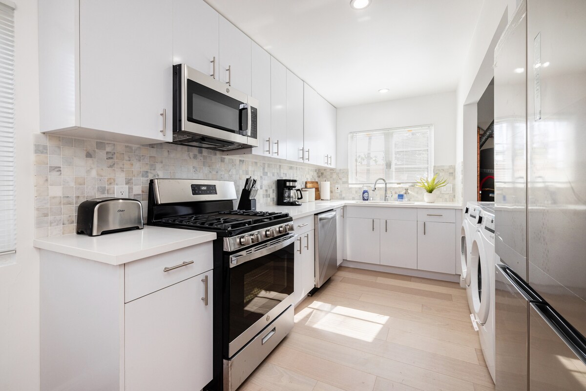 Được Condé Nast Traveler vinh danh là “Nhà nghỉ ven biển tốt nhất trên Mesa ở Santa Barbara”, nơi nghỉ dưỡng ven biển này kết hợp sự thoải mái và phong cách. Chỉ 5 phút đi bộ ra bãi biển và 10 phút đến trung tâm Santa Barbara, nơi đây mang đến cuộc sống ven biển tuyệt vời nhất. Hai phòng ngủ king cộng với một phòng đôi khiến nơi đây lý tưởng cho các gia đình với bộ đồ giường sang trọng và rèm che sáng. Sân sau là một ốc đảo với bếp đốt lửa, vỉ nướng, khu vực ăn uống ngoài trời và chỗ ngồi thư giãn. Bên trong, tận hưởng 2 TV thông minh lớn, đồ nội thất cao cấp và một nhà bếp được trang bị hoàn hảo.