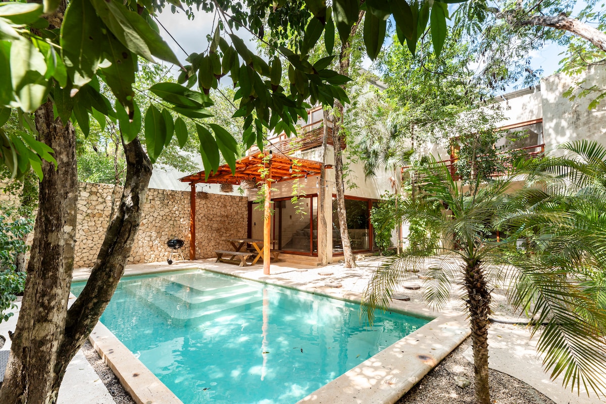 DURING THIS DAYS WE ARE TAKING EXTRA CONTROL AND PRECAUTIONS ON THE CLEANING: WE USE SPECIAL PRODUCTS TO SANITIZER ALL THE AREAS OF THE VILLA. OUR STAFF USE GLOVES AND MASK ALL THE TIME. This peaceful home is part of Holistika, a yoga and wellness center. Minimalist decor with natural wood and cool stone accents add to the sense of calm. Doze in the garden hammock beneath twinkling fairy lights and float in the villa's private pool. Located in the new residential development called “Holistika" (wellness center and yoga center). Just side to the center of Tulum, in a unique park. This new neighborhood offers nature and wellness. The Villa is composed of three bedrooms, two of them have a king size bed with a full bathroom (one with bathtub) and the other has two queen beds with a shower room separated. We have a TV room with a sofa that can be used as a bed. Fully-equipped (TV, Wi-Fi, kitchen, oven, freezer, coffee machine, fans, air-conditioning in each room, washer/dryer) with a beautiful “palapa”, garden an a private swimming pool. The resort offers many holistic treatments and fun activities onsite. Restaurants, craft boutiques, and a bakery are within walking distance. Stunning local beaches, remarkable archeological sites, and downtown Tulum are a short drive or cycle away. It's really easy and safety to use transports in Tulum. Walking, biking, taxi service or car rental service. A new bicycle pathway allows you to bike to the beach easily!