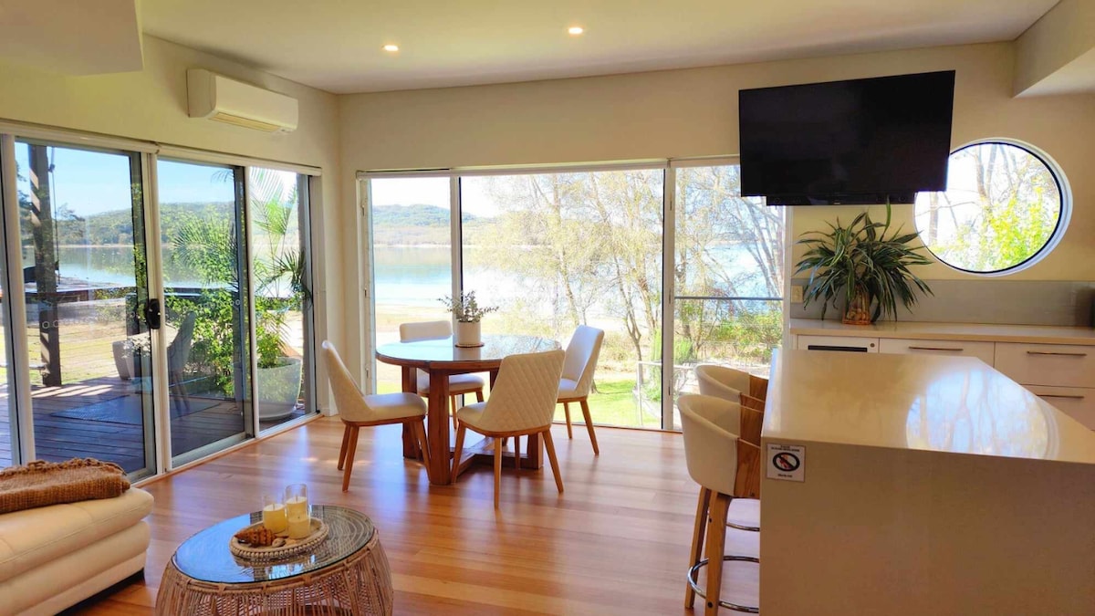Căn hộ khép kín hiện đại đầy phong cách liền kề với sông, tận hưởng tầm nhìn ra mặt nước từ boong riêng của bạn. Nằm cách quán cà phê, nhà hàng, câu lạc bộ và quán rượu chỉ một đoạn đi bộ ngắn. Cách bãi biển 5 phút lái xe. Căn hộ có wifi miễn phí, Netflix, máy rửa chén, tủ lạnh và tủ đông, lò vi sóng, lò nướng và bếp miễn phí. Hệ thống trà, đường và cà phê pod được cung cấp. Phòng ngủ riêng với giường cỡ queen, phòng tắm nhà vệ sinh riêng biệt. Quạt trong mỗi phòng có điều hòa không khí trong suốt. Khăn trải giường, máy sấy tóc, bàn là và cầu là được cung cấp.