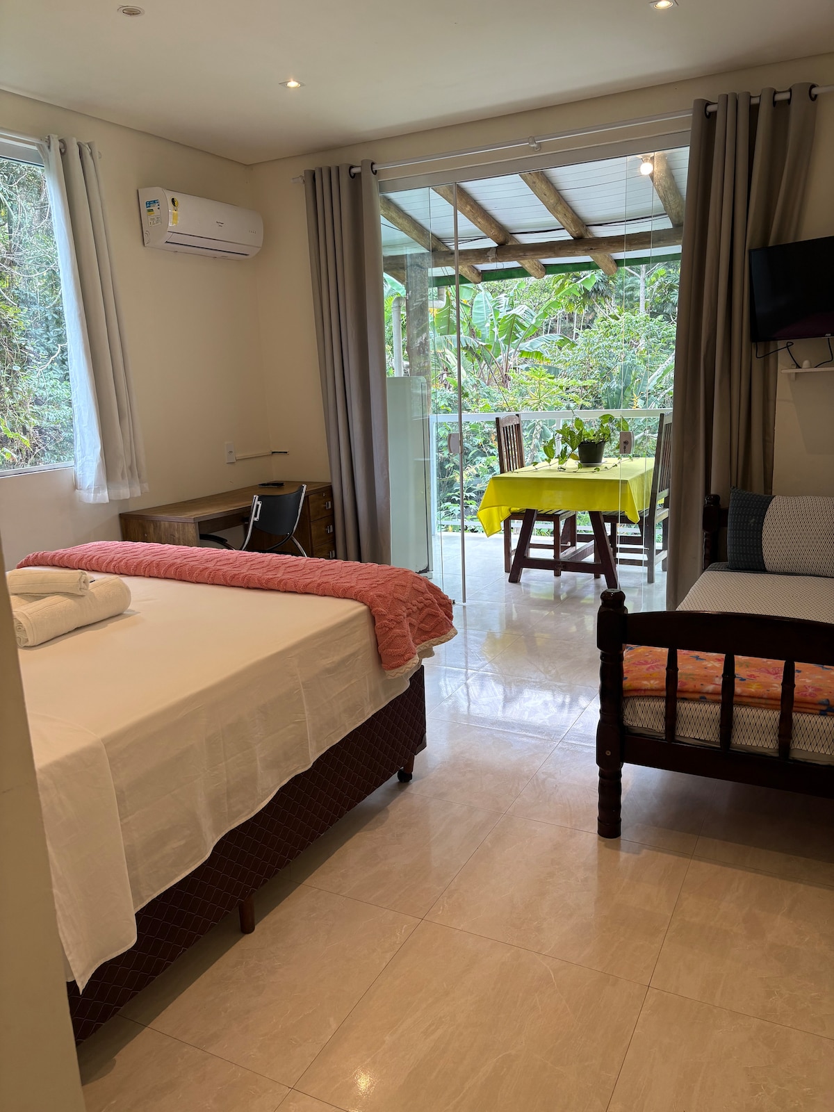 Toàn bộ bungalow ở giữa rừng với hồ bơi tự nhiên và thác nước ở sân sau. Đúng vậy! Tình yêu trong rừng là điểm đến hoàn hảo cho những ai muốn ở trong rừng Đại Tây Dương, đầy sự phong phú tự nhiên và văn hóa. Với kiến trúc và trang trí Bali, bungalow tích hợp với thiên nhiên, xung quanh là các bãi biển, sông, hồ bơi tự nhiên, thác nước và đường mòn. Trong một quilombola và làng chài, nó là một phần của khu vực bảo tồn của Công viên Tiểu bang Serra do Mar và Công viên Bocaina.