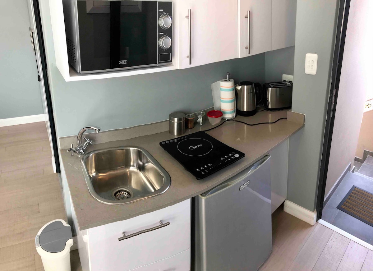 Một không gian studio hiện đại tuyệt đẹp với tầm nhìn ra rừng đô thị và ban công riêng. Có bếp nhỏ với tủ lạnh, bếp từ, lò vi sóng, máy nướng bánh mì, ấm đun nước và dụng cụ cơ bản. Phòng có phòng tắm riêng với vòi sen và chỗ đỗ xe an toàn có mái che. Nó nằm ở vùng ngoại ô thời thượng của Parkhurst và nằm trong khoảng cách đi bộ từ Đại lộ số 4 sôi động với nhiều nhà hàng và quán cà phê. Cách Ga Rosebank Gautrain 3 km nối với Sandton.