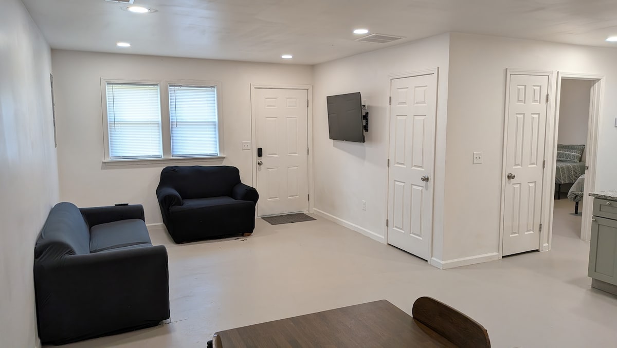 VỊ TRÍ, VỊ TRÍ và VỊ TRÍ! Chào mừng bạn đến với ngôi nhà riêng của chúng tôi với hai gara xe hơi ở trung tâm Memphis! Tọa lạc ngay gần Main Street và cực kỳ dễ đi bộ. Nhà này có bốn tầng. Tầng trệt là gara. Tầng hai là phòng khách và bếp với phòng vệ sinh cơ bản. Thứ ba là phòng ngủ và tầng bốn là tầng thượng. Hoàn toàn không có tiệc tùng! Chúng tôi sẽ phải hủy hoặc từ chối đặt phòng của bạn!