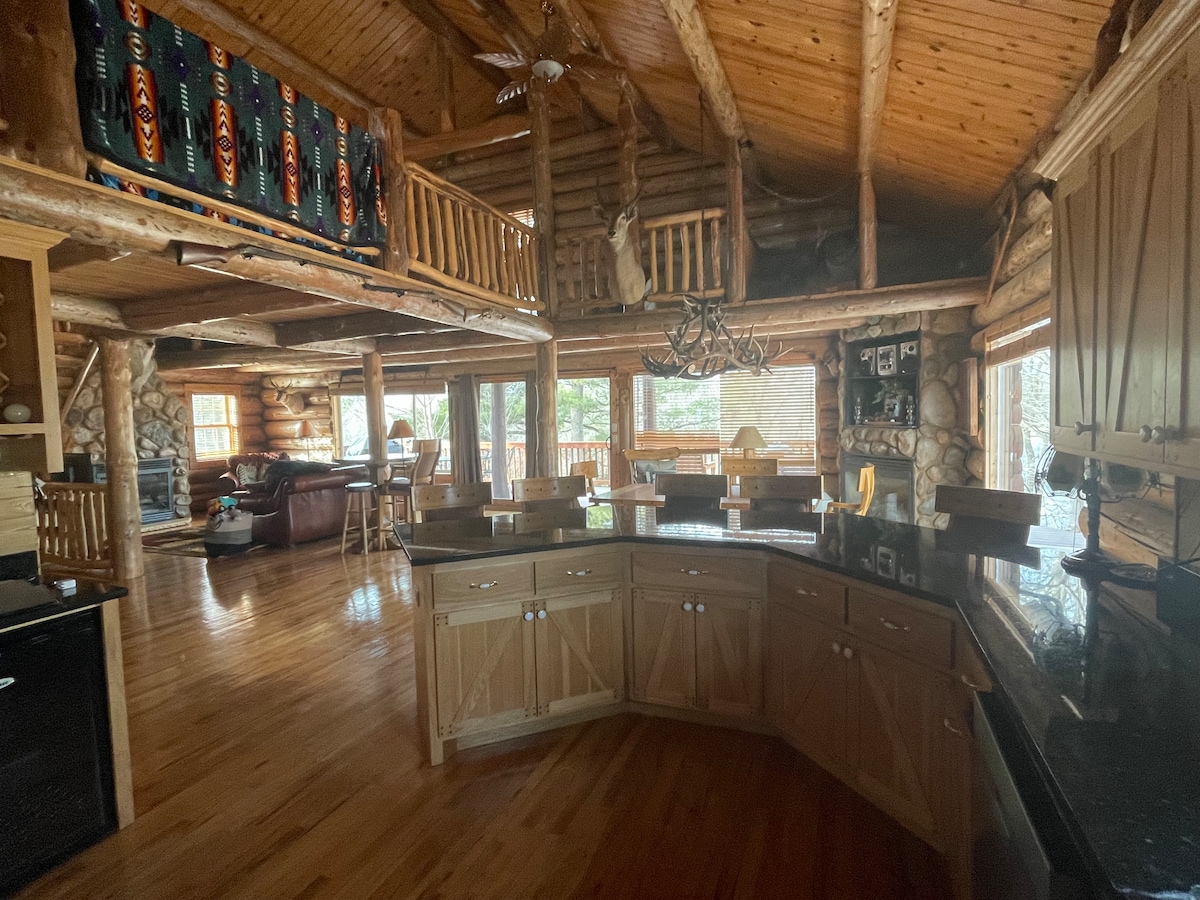 Relax with your family at the lake, pull your boat up to the dock! A true log home, recently built with great amenities—heated game room and outdoor pizza oven for cozy nights! With 10 beds and 16 sleeping spots, this property can accommodate your entire family gathering. Enjoy the hot tub, jacuzzi tub in the main bath, or try out the large shower with multiple jets and rain shower. Movie theatre with 82” smart TV and electric reclining seats. Just over an hour from the twin cities!