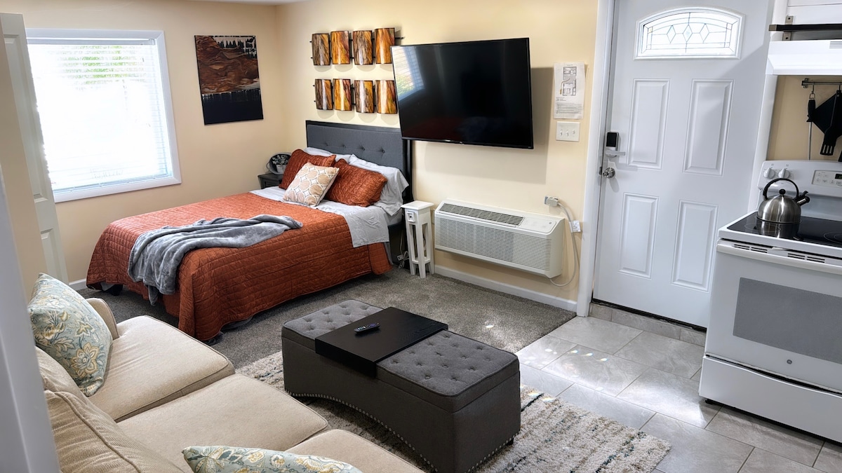 Đây là một ngôi nhà nhỏ với bãi đỗ xe riêng gần Baltimore và Annapolis. Tôi có một giường Murphy cỡ Queen, một giường đơn kéo ra. Nó có nhà bếp được cập nhật, phòng tắm được cập nhật, tủ quần áo, Internet và hệ thống sưởi và làm mát. Tôi cũng có bếp viên. Bếp của tôi có đầy đủ đĩa, dao, nĩa, nĩa, nồi và chảo. Phòng tắm có khăn tắm và thảm. Tôi đã cố gắng thêm tất cả các tiện nghi để làm cho nó thoải mái như ở nhà. Xem nội quy thú cưng trong phần cần lưu ý khác.