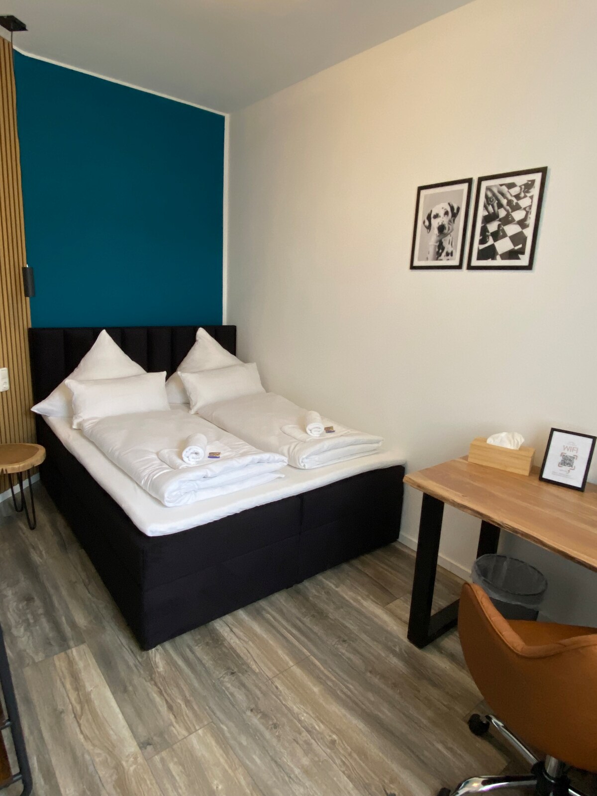 Welcome at Qonroom ! Und erst einmal herzlichen Glückwunsch zur Auswahl Deines neuen Apartments auf Zeit in Minden. Dein neues Apartment bietet Dir so einiges: ● fußläufig zur Innenstadt, Bäcker und Restaurant ● eine gut ausgestattete Küche mit Spülmaschine ● Nespresso, sowie Filterkaffee ● Smart TV inclusive Netflix ● bequemes Boxspringbett für 2 Personen von ● Die gesamte Wohnung ist hochwertig und liebevoll eingerichtet ● sehr schnelles Internet