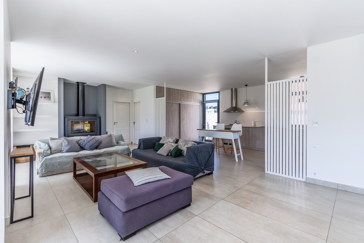 Ngôi nhà hiện đại với khu vườn gần biển và bãi biển.