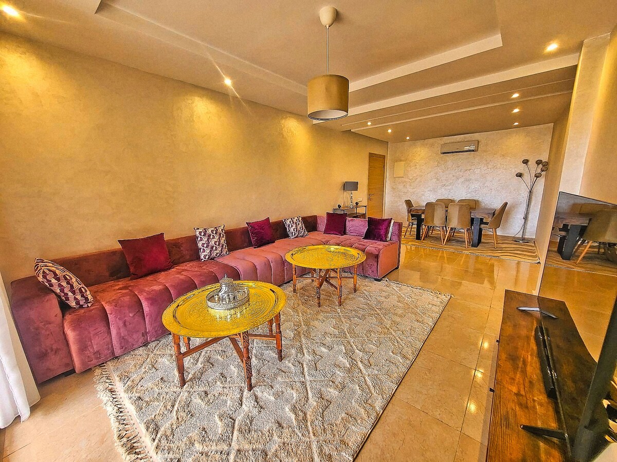 Khám phá một căn hộ xuất sắc, kết hợp giữa nét thanh lịch đương đại và vẻ quyến rũ của Ma-rốc. Tọa lạc tại một vị trí đắc địa, chúng tôi mang đến cho bạn một trải nghiệm độc đáo, được thiết kế cho những khách tìm kiếm sự thoải mái, yên tĩnh và tinh tế. Tận hưởng một không gian sáng sủa, được trang trí trang nhã trong một môi trường yên bình. Mọi chi tiết đều được thiết kế tỉ mỉ để mang đến cho bạn một kỳ nghỉ đáng nhớ, kết hợp giữa sự hiện đại và truyền thống. Lý tưởng cho một kỳ nghỉ lãng mạn, một chuyến công tác hoặc một kỳ nghỉ gia đình ở Marrakech.