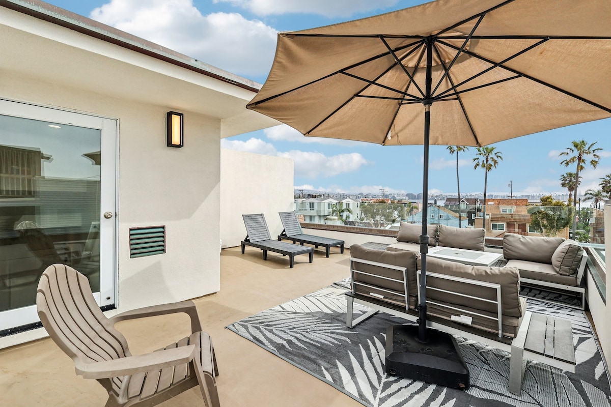 Sunny & Inviting Beach Home w Stunning Views ~ Spacious Rooftop Deck w Panoramic Vistas ~ Rooftop Firepit & BBQ Deck off the Kitchen ~ Fully Enclosed, Quiet Patio Courtyard ~ Just 50 Short Steps to the Beach ~ Sauna for Four ~ Private Full Baths off Each Bedroom ~ KING Bed in the Master Suite ~ Dedicated Workspace w View ~ High-Speed Wi-Fi ~ Family-Friendly ~ Conveniently Near All Attractions ~ Tri-Level Design with Ample Space ~ 3 Parking Spaces ~ Beach Gear ! ~ Nơi nghỉ dưỡng lý tưởng trên bãi biển!