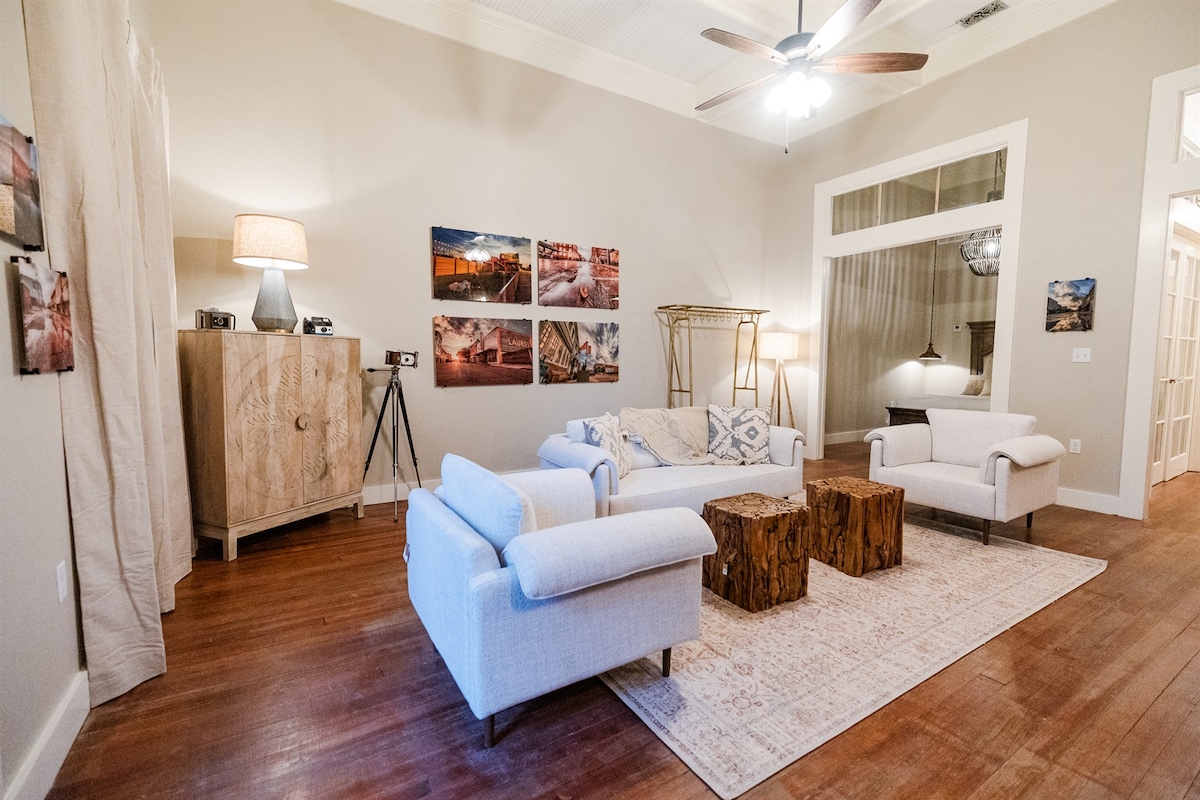Dành cuối tuần hoàn hảo ở Vịnh và sống như người địa phương! Căn hộ gác xép mới, mở và thoáng khí này nhìn ra BSL Depot lịch sử. Không gian này cung cấp trang trí hiện đại, kiểu dáng đẹp, nhưng vẫn cảm thấy ấm áp và chào đón. Thưởng thức cà phê buổi sáng của bạn trên ban công theo phong cách New Orleans của chúng tôi nhìn ra công viên. Đi dạo ở trung tâm thành phố hoặc ra bãi biển. Sau đó kết thúc một ngày thư giãn trên boong sau lễ hội của chúng tôi.