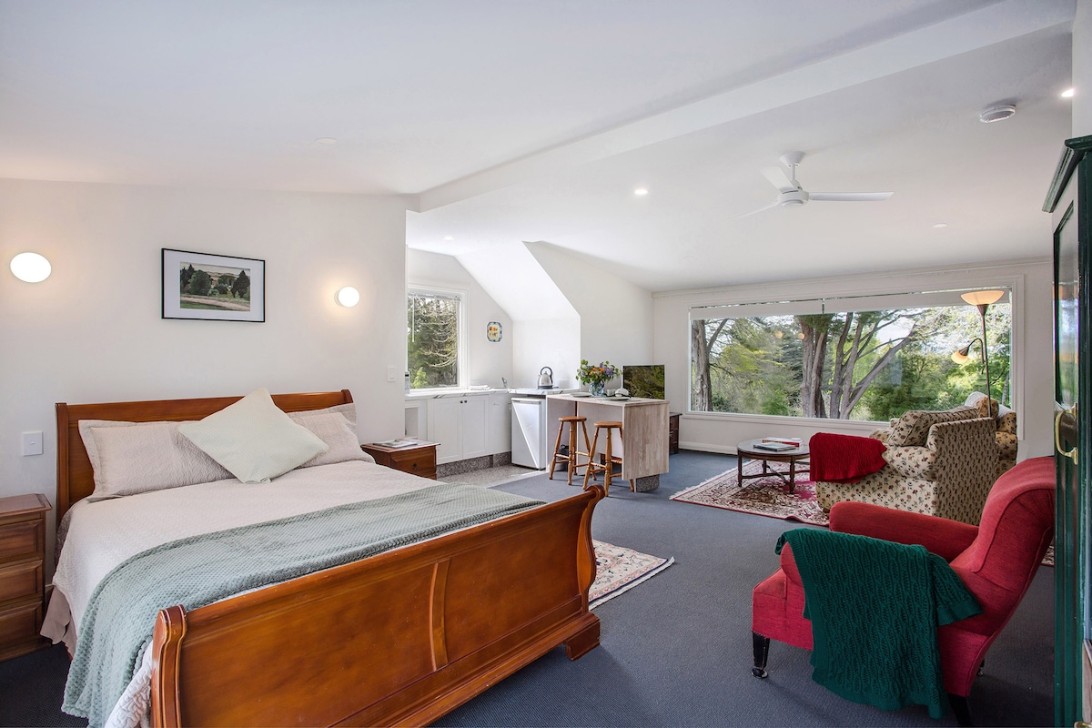 The Potting Shed at Bunya House is a purpose built guest accommodation with every amenity covered to make your stay in Bowral an enjoyable one. Positioned overlooking a beautiful vegetable garden designed by renowned Australian garden designer Paul Bangay The Potting Shed Polished concrete floors, weatherboard walls, a King bed that can be split into King Singles, a kitchenette with breakfast making facilities. Walk to town.