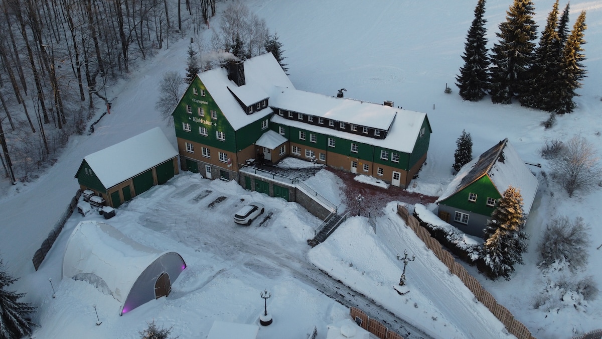 Trên 500 tuổi Sân nhà máy bia với các yếu tố tòa nhà lịch sử đã được cải tạo. Ngay dưới chân dãy núi Ore gần Chemnitz . Khiêu vũ ba lần một tuần. Sân chơi bowling và nhà hàng. Mở cửa hàng ngày.
