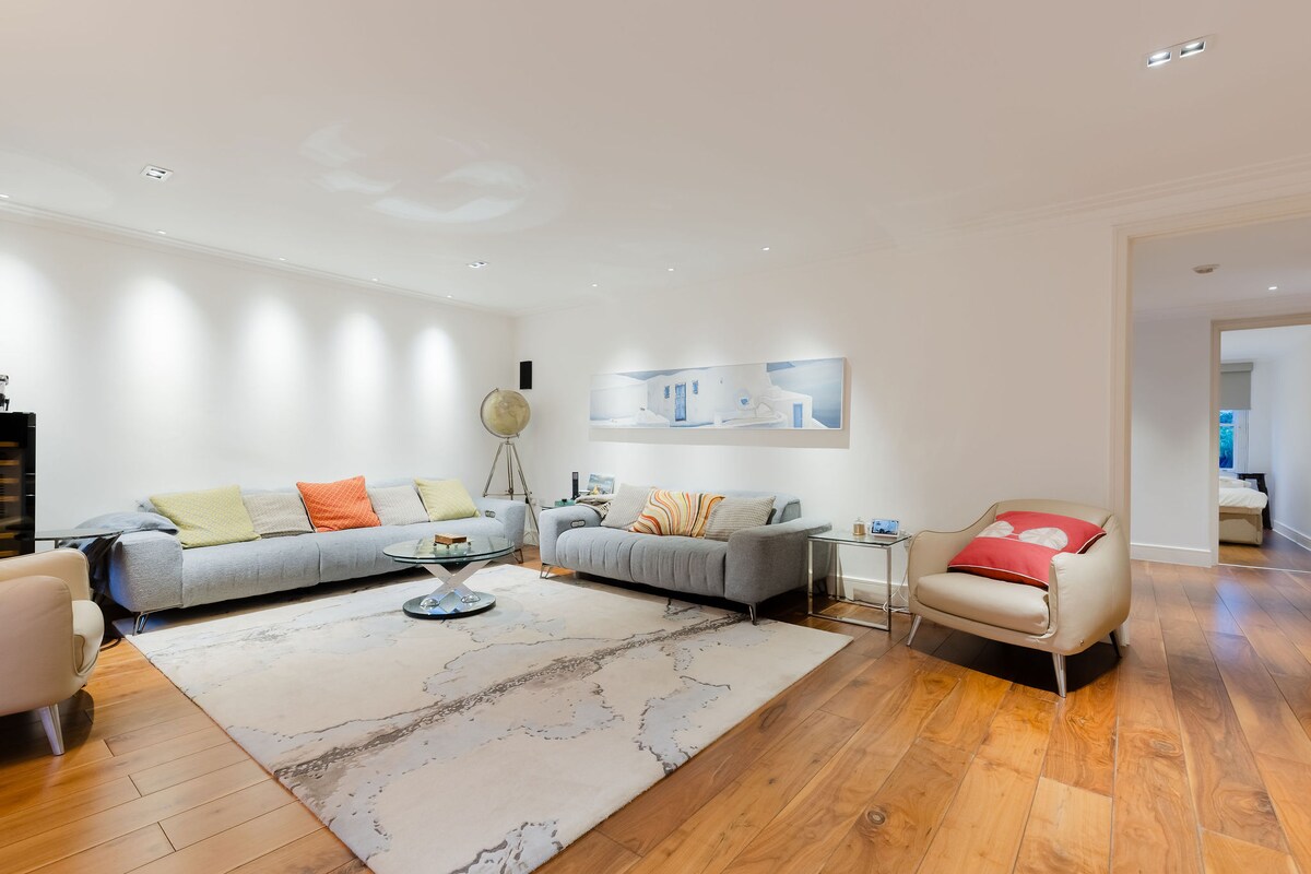 📍2 mins walk to Hampstead tube station and Heath park. One of the finest townhouses in Hampstead, this luxurious 2-bedroom townhouse comfortably sleeps up to 6 guests. Featuring UK king-size beds, private entrance, chic design, stylish bathrooms, underfloor heating, and air conditioning. Surrounded by best restaurants of Hampstead Heath and easy transport link - under 15 mins ride to all London sightseeing. This elegant luxury townhouse blends luxury and comfort with top-tier amenities. 🏡