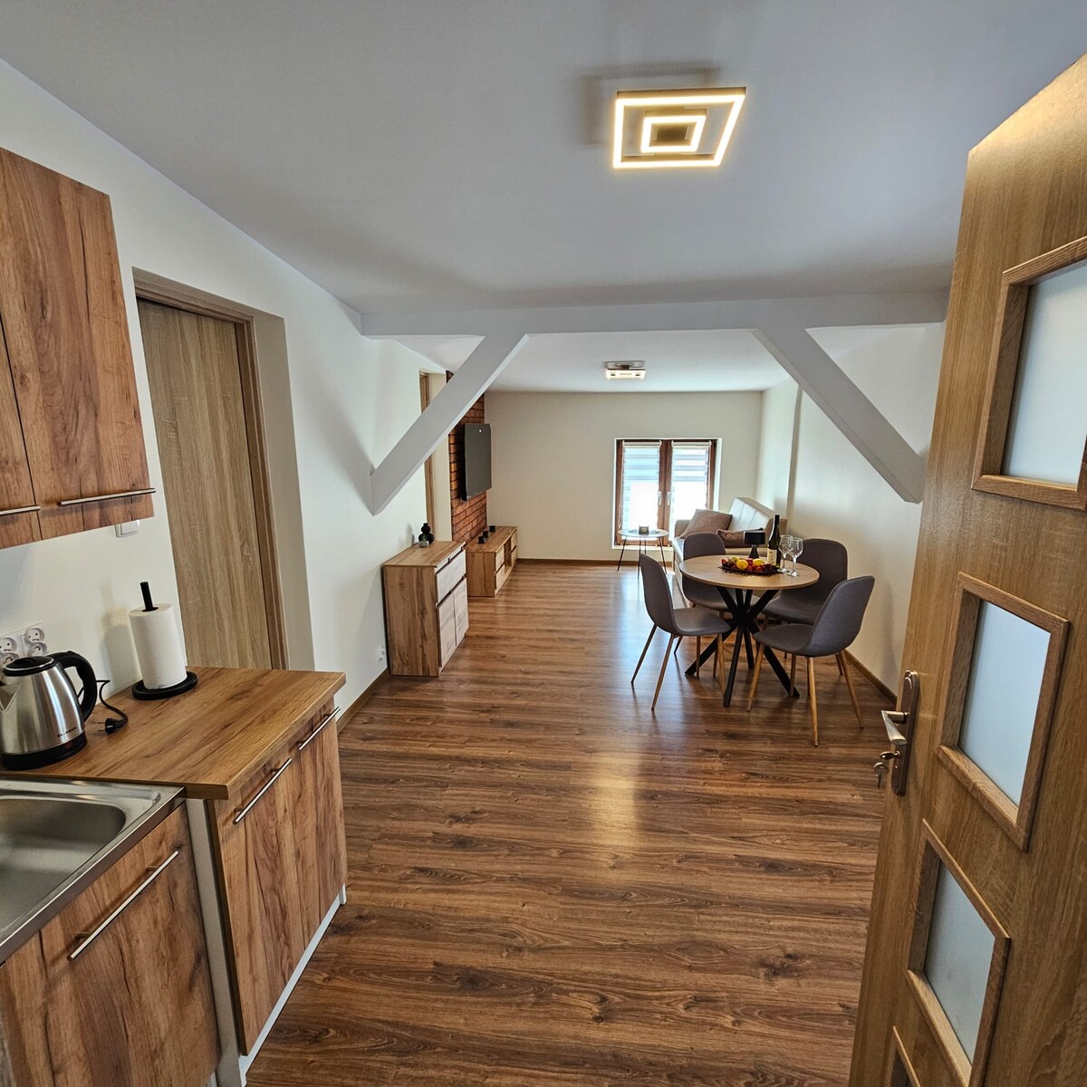 Obiekt położony w centrum Działdowa oferuje komfortowe noclegi zarówno dla turystów, jak i osób podróżujących służbowo. Nowoczesne, przytulnie urządzone pokoje wyposażone są w wygodne łóżka, telewizory, dostęp do Wi-Fi oraz prywatne łazienki. W pobliżu obiektu znajduje się bezpłatny parking monitorowany. Goście mają do dyspozycji w każdym apartamencie w pełni wyposażony aneks kuchenny.