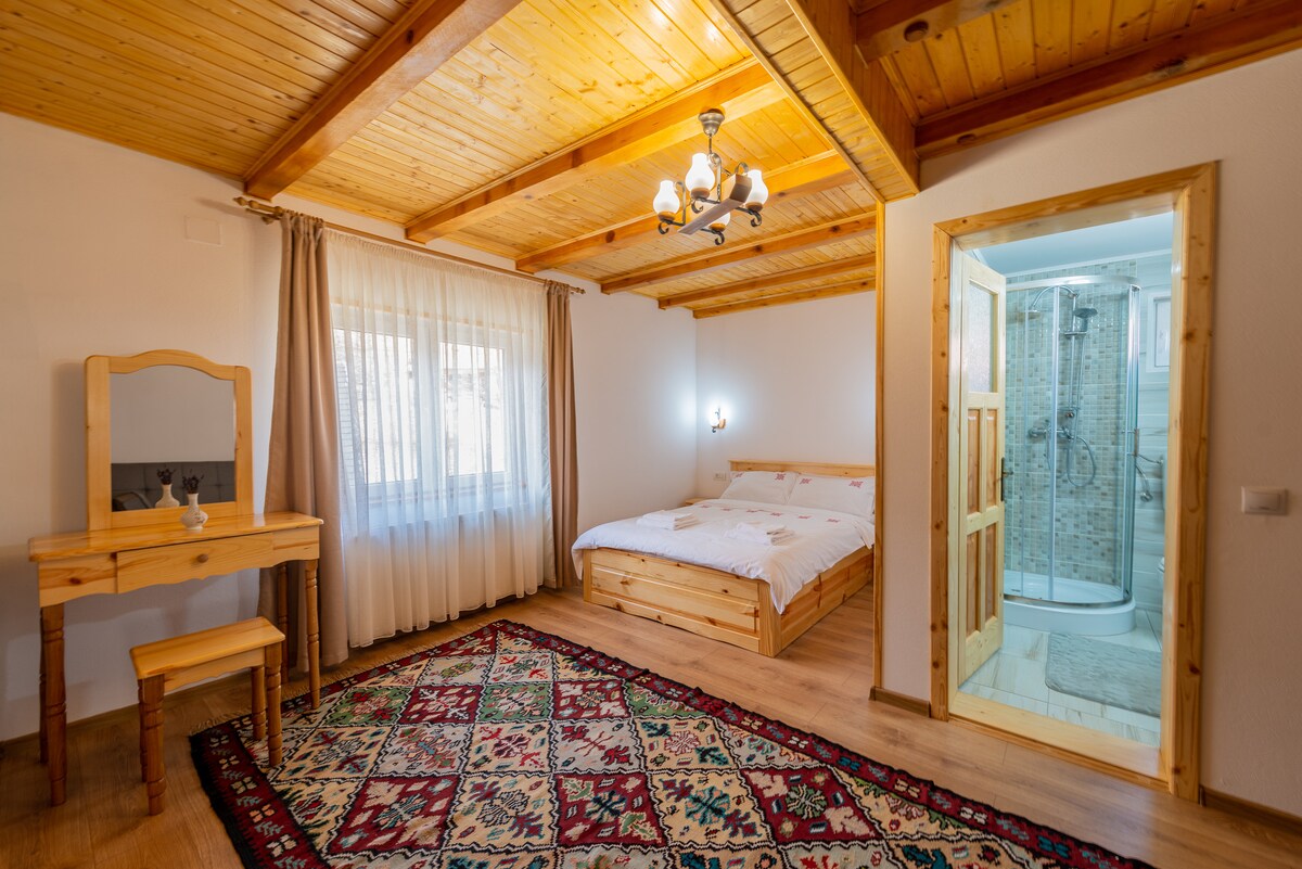 Chúc bạn trở lại cuộc sống, một ngôi nhà có lịch sử lâu đời đã được sinh ra, vị trí mới của chúng tôi nằm ở Moieciu từ bên dưới, cách Lâu đài Bran 2 km trong một khu vực yên tĩnh với tầm nhìn tuyệt đẹp ra khối núi Bucegi, nó cung cấp cho bạn chỗ ở trong các phòng rộng rãi và hiện đại. Do đó, chúng tôi cung cấp 4 phòng, có cấu trúc như sau: 2 căn hộ có sân thượng trên lầu, 1 phòng ba và 1 phòng đôi ở tầng trệt.