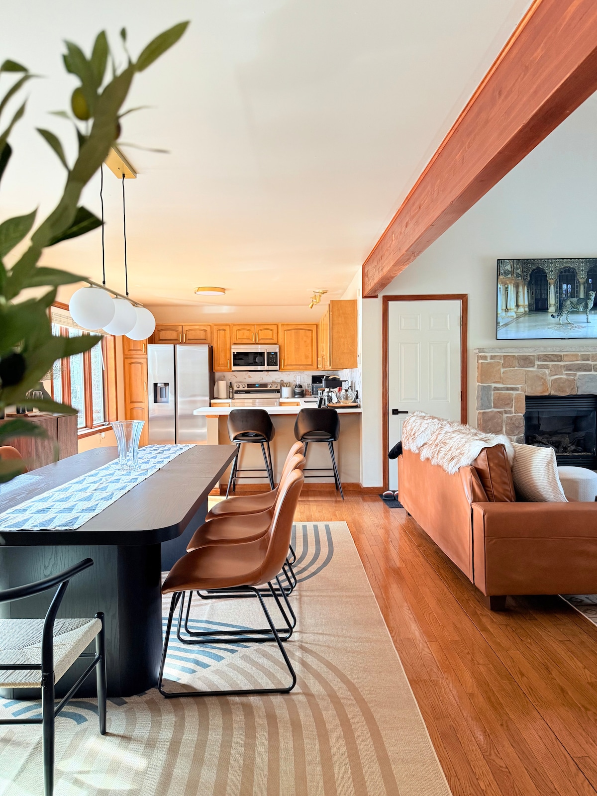 Chào mừng bạn đến với Lake House on Beaver. Nhà mới cải tạo 4BR, 3BA hướng hồ, ngủ 12 người - hoàn hảo cho gia đình và nhóm. Phòng trò chơi có bàn bi-a, khu trò chơi điện tử, TV khổng lồ và trò chơi trên bàn. Thư giãn trong bồn tắm nước nóng, tụ tập bên lò sưởi hoặc chơi cornhole. Nướng và nhiều chỗ ngồi ngoài trời để tận hưởng tầm nhìn ra hồ. Hồ nằm ngay bên kia đường! Bao gồm máy nghe nhạc với đĩa than, nhà bếp có sẵn, Wi-Fi nhanh và không gian ấm cúng. Lý tưởng cho niềm vui quanh năm - gần với đi bộ đường dài, câu cá, trượt tuyết và hơn thế nữa.