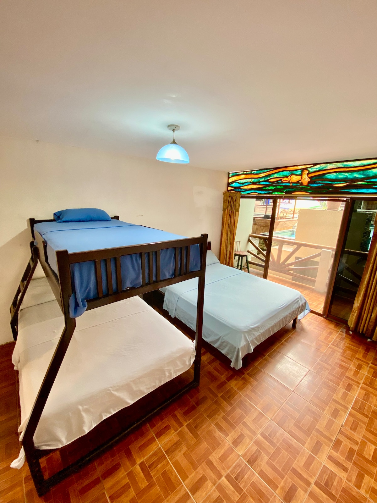 Phòng ở tầng trệt với một giường đôi và hai giường tầng 1,5 giường, lý tưởng cho các nhóm hoặc gia đình tối đa 6 người. Nó có điều hòa nhiệt độ, phòng tắm riêng chức năng, TV thông minh với Netflix, giá treo quần áo và móc treo quần áo. Thoải mái và thông gió tốt. Miễn phí sử dụng hồ bơi, nhà bếp, bếp nướng, vườn, võng và nhiều tiện nghi khác. Chỉ cách bãi biển và trung tâm thành phố Montañita 7 phút, nhưng tránh xa tiếng ồn. Sự yên tĩnh và không gian để chia sẻ.