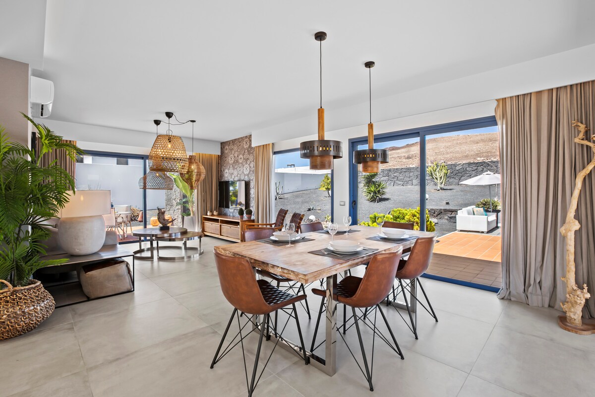 Biệt thự được cải tạo vào tháng 7 năm 2025 với tầm nhìn ngoạn mục ra biển, Fuerteventura và Isla de Lobos. Nó có 4 phòng ngủ, 4 phòng tắm, 2 hồ bơi riêng (một hồ nước nóng), WiFi tốc độ cao, nhà bếp được trang bị, khu vực giặt ủi, vườn, khu vực nướng thịt ngoài trời, bóng bàn và bi sắt. Lý tưởng cho các gia đình hoặc cặp đôi đang tìm kiếm sự riêng tư, thoải mái và thư giãn trong một khung cảnh Lanzarote độc quyền.