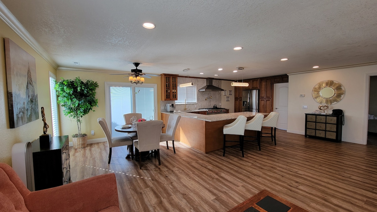 Chào mừng bạn đến với ngôi nhà hiện đại 4 giường/3 phòng tắm rộng 3.000 ft vuông của chúng tôi được xây dựng vào năm 2022. Tận hưởng các tiện nghi sang trọng trong ngôi nhà hai tầng rộng rãi này: nội thất và TV hoàn toàn mới, nhà bếp hiện đại, thiết bị cao cấp, bồn tắm chính giống như spa, sàn sưởi ấm rực rỡ, hệ thống loa tích hợp, Internet sợi quang và thiết bị chiếu sáng tuyệt đẹp trong suốt. Bộ sạc Tesla trong gara. Vị trí thuận tiện cách bãi biển, sân golf, nhà hàng và mua sắm vài phút. Hãy vui vẻ với cả gia đình và khách tại địa điểm đầy phong cách này.