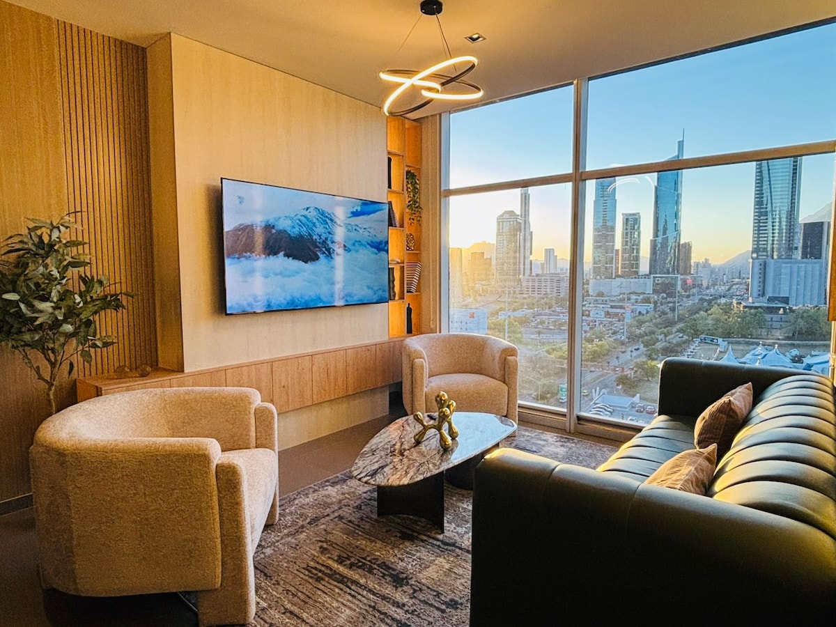 ✨🏙 Departamento de lujo en Torre Vitant, San Pedro Garza García ✨ Vive la experiencia de hospedarte en un departamento elegante, moderno y perfectamente ubicado en una de las zonas más exclusivas de San Pedro Garza García, con una hermosa vista al Circuito Frida Kahlo 🌇 Vistas icreibles de la ciudad, alberca, gimnasio, sala de juegos infantiles, gimnasio, area de coworking, resaturantes y tiendas de conveniencia muy cerca.
