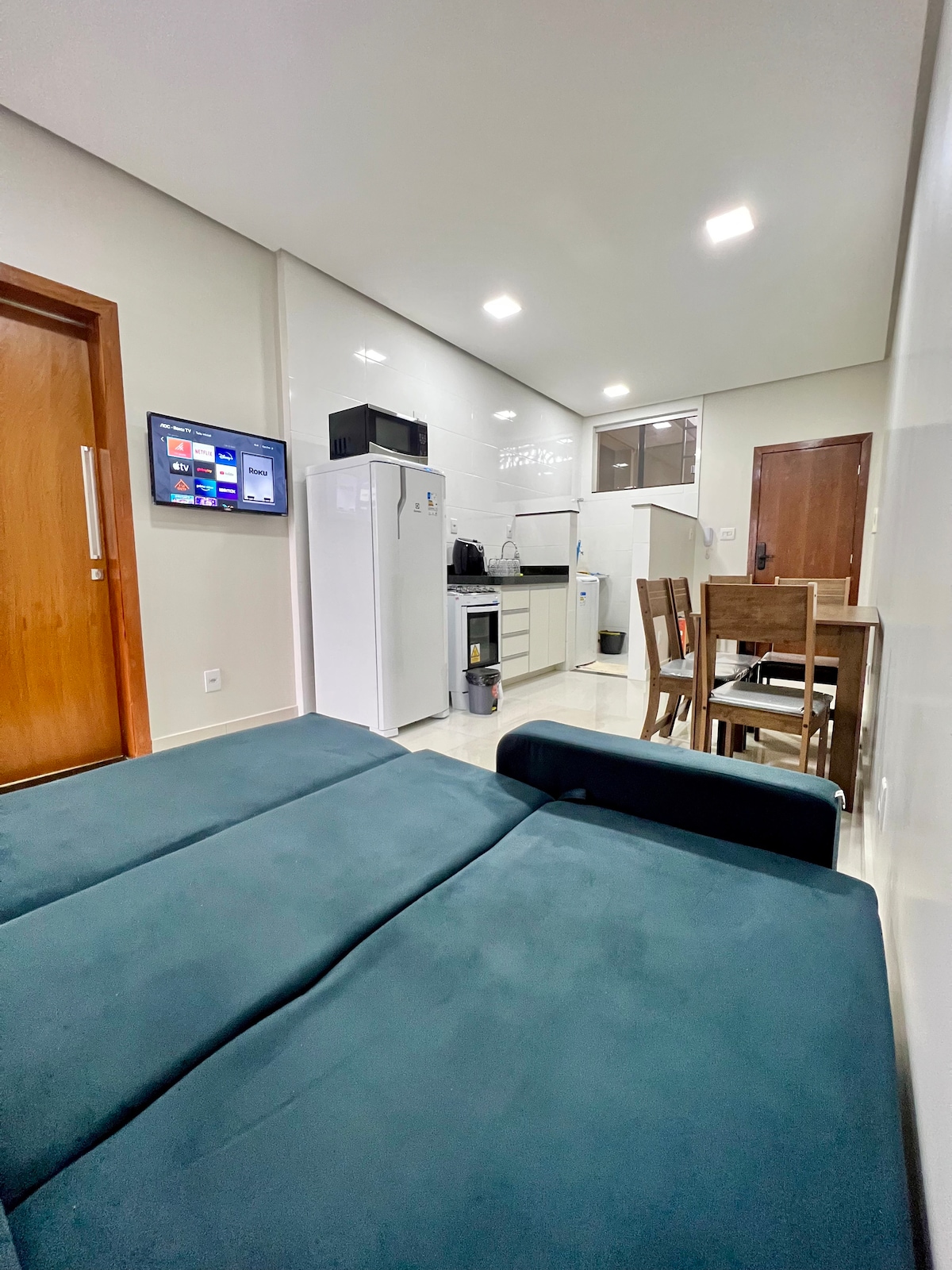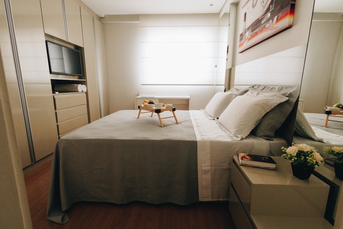 Một căn hộ đẹp và ấm cúng để bạn ở gần trung tâm! Mọi thứ được chuẩn bị cho bạn với tình cảm tuyệt vời, với mọi thứ mới mẻ, vì vậy bạn có thể ở lại lâu như bạn cần. Chỗ ở cho tối đa 04 người, với 01 giường đôi và một sofa giường cho tối đa 02 người. Tất cả cơ sở hạ tầng có điều hòa không khí, Internet Wi-Fi, TV thông minh, tủ lạnh, bàn, bếp, nồi, máy sưởi, dao kéo, ly, bộ lọc nước, giường và khăn tắm, máy sấy,v.v.