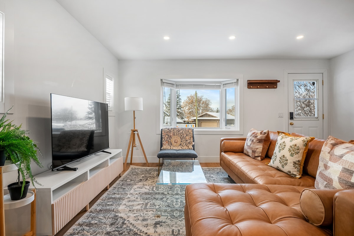 Enjoy a stylish and quiet experience at this centrally located place. 10 min drive to downtown and 1hr 23min to Banff. Contemporary appliances, designer furnitures, and a fully supplied whole kitchen! Stream movies and shows on our high-speed wifi and experience our excellent guest service that meets all your needs. Keyless self check-in through emailed guide makes entrance flexible and easy. Parking is free and always reserved for you. Visitors can park on the street for free.