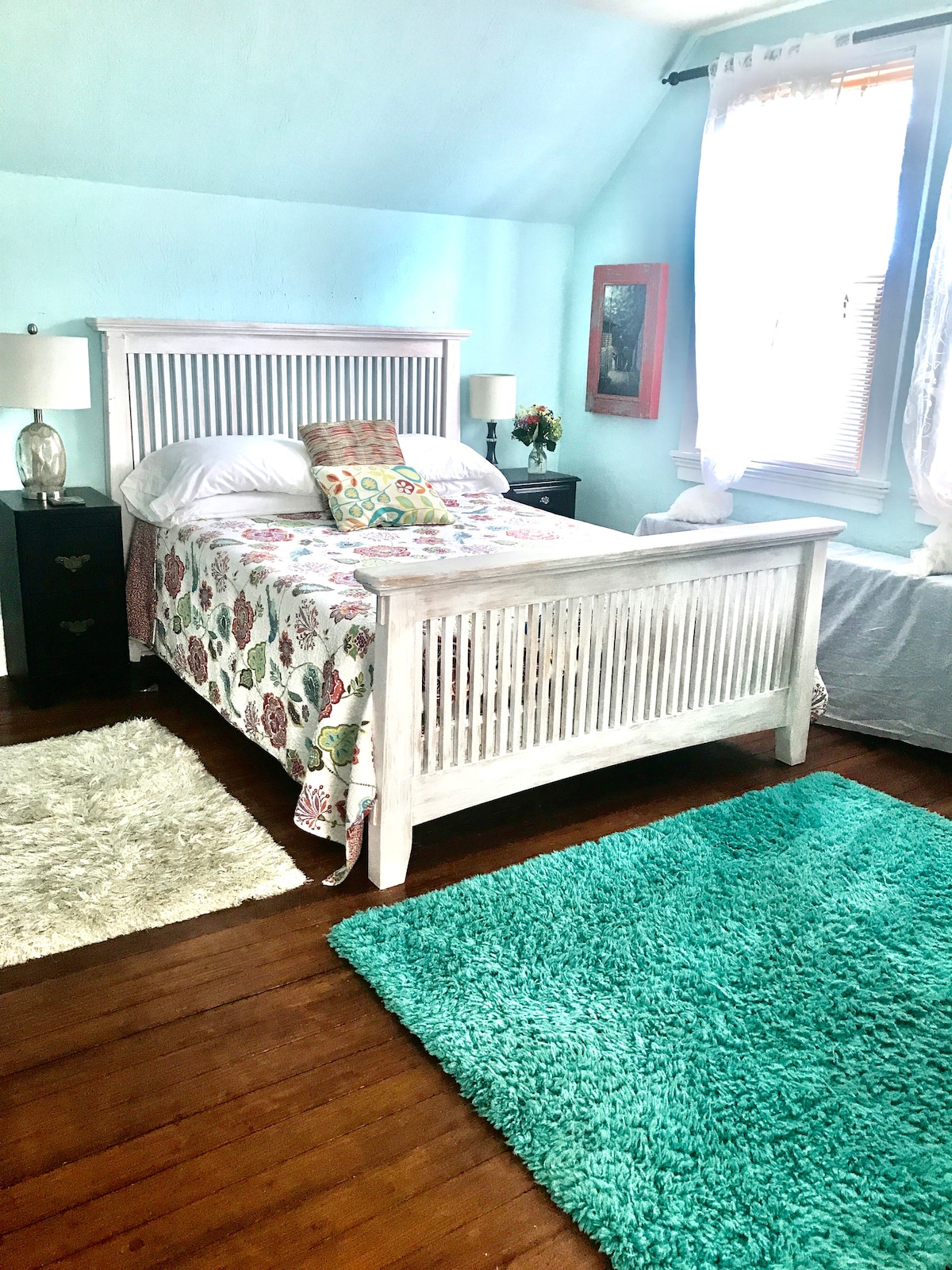 Chào mừng bạn đến với Tower Suite ở tầng 3 của Manor House! Căn hộ nằm với một giường cỡ Queen và nệm futon mui trần thoải mái. Với tầm nhìn tuyệt vời từ tầng quan sát của tòa tháp, máy sưởi/điều hòa nhiệt độ hiện đại, bồn tắm chân đế ngâm cổ điển 72”và bếp nhỏ được trang bị, Tower Suite mang phong cách và thoải mái. Những người tiếp nhận các linh hồn có thể trải nghiệm những tiếng nói thì thầm của quá khứ vang vọng qua khu đất Nội chiến này! Có giới hạn về khoảng trống, vì vậy hãy thận trọng.