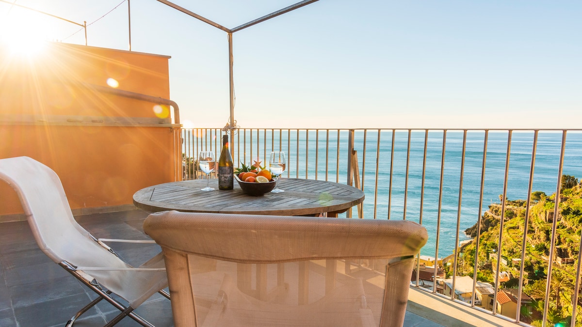 Căn hộ tại cảng Riomaggiore có sân thượng và tầm nhìn ra biển