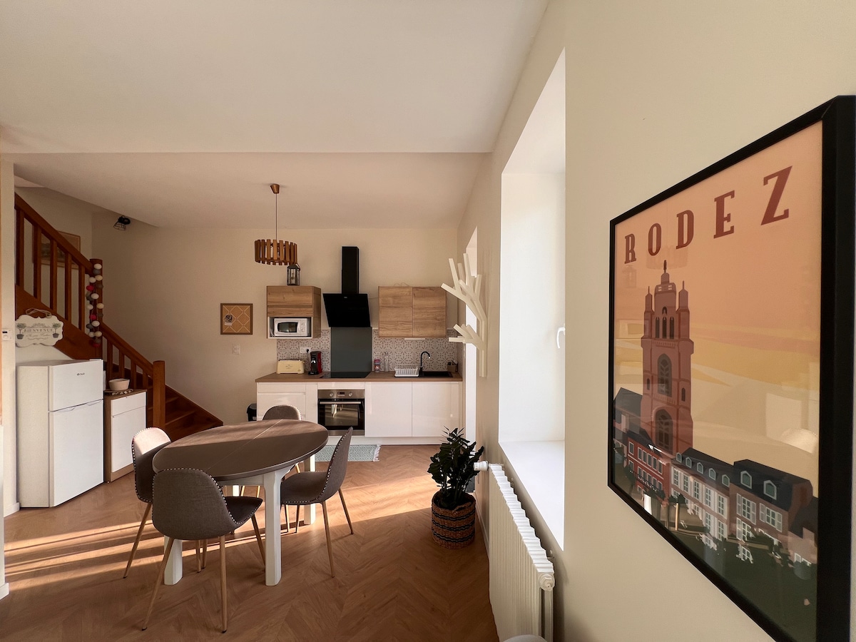 Profitez de cette ancienne étable rénovée au cœur du village de Concourès sur le Causse Comtal proche de toutes commodités. 14 km de Rodez, 8 de Bozouls. Albi 1 heure. Aubrac 45 mm lac 40 mm Logement indépendant avec terrain privé. Grande pièce à vivre, cuisine ouverte équipée, 2 chambres (1 avec 1 lit double en 140cm et 1 avec 2 lits en 90cm superposés, Wi-Fi disponible. RECHARGE de voiture électrique interdites au cas ou supplément demandé de 10 euro par jour
