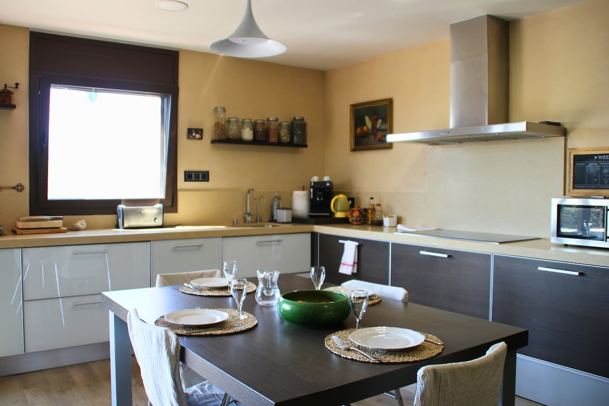 Một ngôi nhà nhỏ với cảm giác không gian được bao quanh bởi thiên nhiên: một khu vườn rộng lớn đầy hoa và cây cối, nước chảy, hồ bơi, 2 sân thượng để thưởng thức bữa sáng với ánh mặt trời buổi sáng, một bữa trưa languid nhìn ra khu vườn và cocktail buổi tối để ăn mừng hoàng hôn. Có một phòng ngủ chính, một phòng với giường tầng, một sofa giường trong phòng khách. Nơi tuyệt vời để nghỉ ngơi, thư giãn hoặc đặt nền tảng cho một kỳ nghỉ hoạt động rộng hơn: Dưới 60 phút đến Barcelona, các bãi biển Costa Brava, Waterworld, đi bộ trên núi.