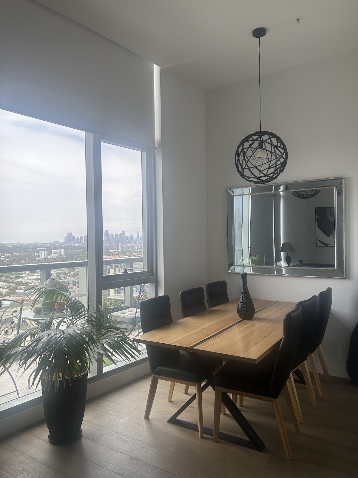 Enjoy unbeatable views from this elevated apartment overlooking Melbourne’s skyline and the Maribyrnong River. Relax in the open-plan living area with floor-to-ceiling windows, a comfy sofa bed, and TV. Cook with ease in the spacious, fully equipped kitchen. Sip morning coffee or evening wine on the balcony with stunning vistas - perfect for couples, solo travellers, or small groups.