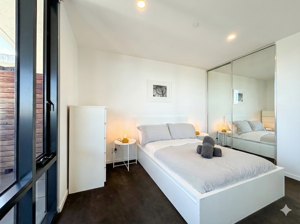 A simple, clean and stylish 2 bedroom 2 Bath living space where you can stay, refresh and relax. This space welcomes you to rest up or as your base to explore as you desire. A dedicated desk let's you get on with work or keeping in touch with friends and family whilst the fully equipped kitchen lets you cook a feast. You also have the option of choosing one of the neighbourhood eateries or heading into the City which is just 5 Kms away and the explore the sights, sounds and tastes of Melbourne