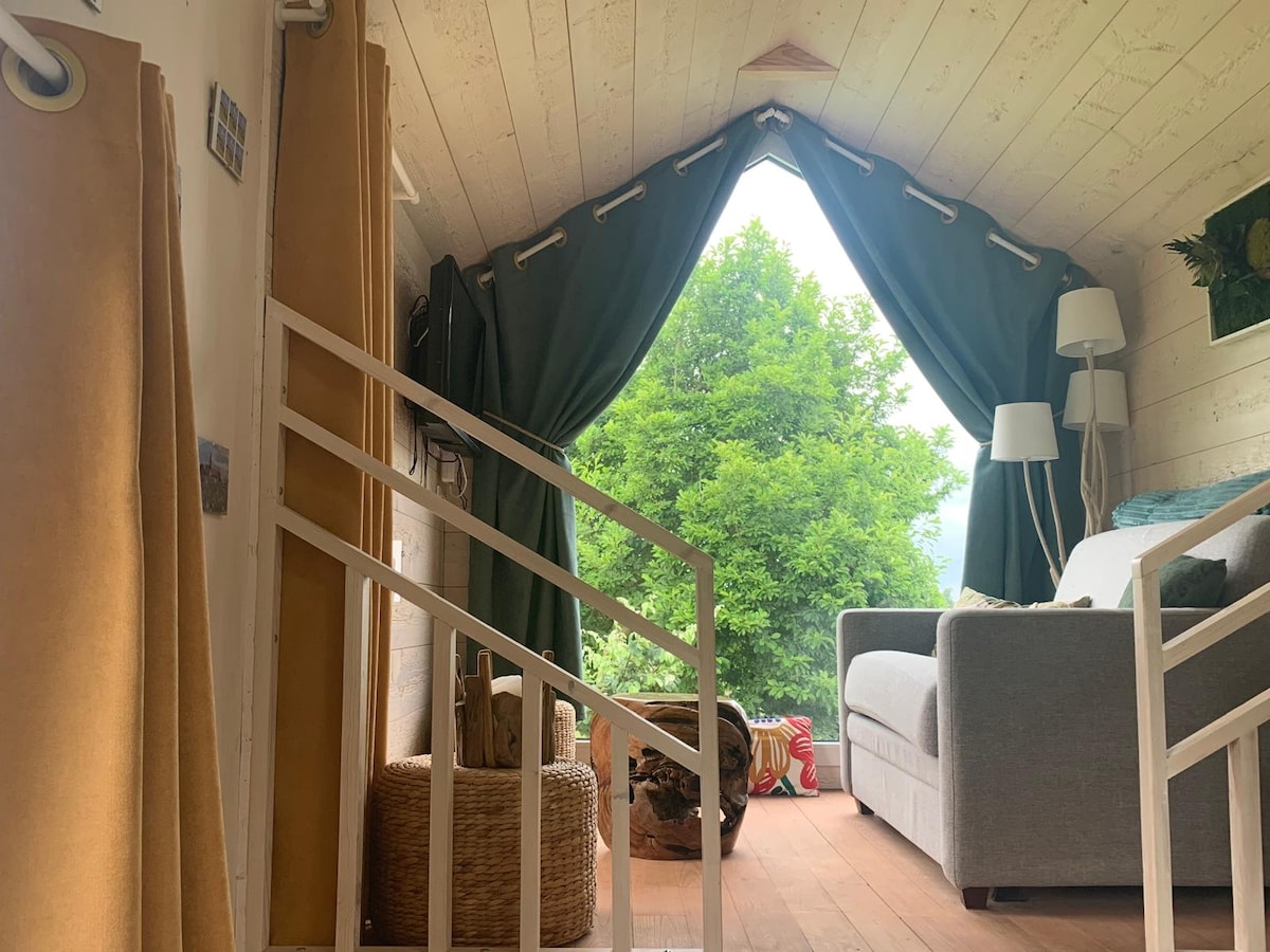 Nhà gỗ bất thường với kích thước và sự thoải mái nằm trong vườn cây ăn quả rộng 1000 m2 của chúng tôi, gần vườn rau của chúng tôi, nhìn ra päturages nơi gia súc và ngựa tốt nghiệp. Yên tĩnh, hướng về phía tây nam, gần một cửa hàng tạp hóa tổng hợp và một nhà máy bia có thể phục vụ vào buổi trưa các ngày trong tuần, trên cao nguyên phía bắc ROUEN gần các con đường chính A 28, A 29 và A 13 . Dành cho 4 người bao gồm 2 trẻ em (phòng cabin) với 3 giường 160, 140 và 90 trên ghế sofa của phòng khách