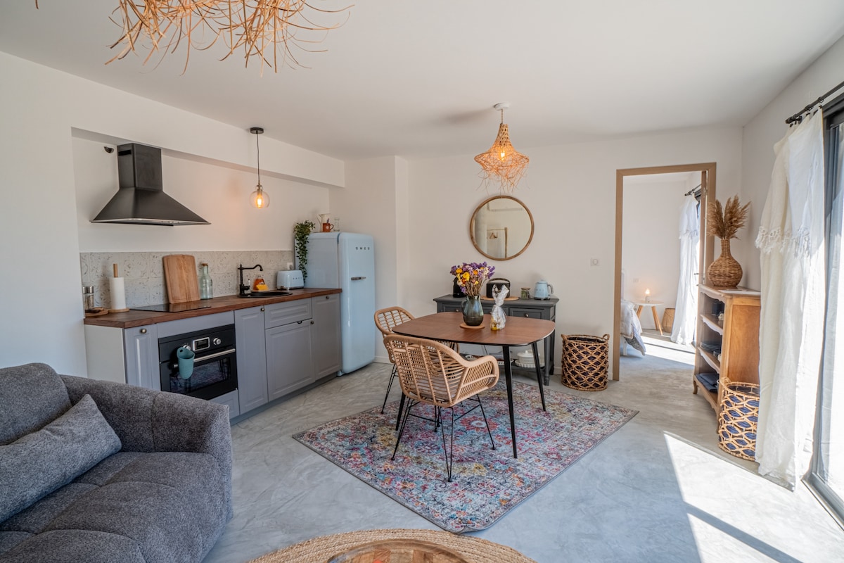 Hãy tự thưởng cho mình một khoảnh khắc thư giãn và nghỉ ngơi như một cặp đôi hoặc gia đình ở Mornas! 🌸 Trong một chuồng cừu cũ, hãy khám phá một căn hộ khác thường mới được cải tạo, yên bình và đầy đủ tiện nghi! Nằm ở vị trí lý tưởng dưới chân lâu đài lịch sử và gần tất cả các tiện nghi, chỗ ở của chúng tôi có thể dễ dàng tiếp cận. Truy cập nhanh vào A7/N7//Bãi đỗ xe gần đó// Có thể che chở xe đạp của bạn vào ban đêm