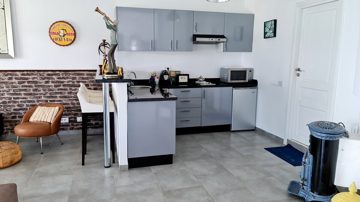 Ẩn mình trong trung tâm của một khu vườn tươi tốt với các loại cây kỳ lạ, cây ăn quả và sân chơi bi sắt, thiết kế kiểu dáng đẹp pha trộn giữa thẩm mỹ đương đại tinh tế và hàng thủ công Ma-rốc. Khung cảnh tuyệt vời của đại dương và những ngọn núi xung quanh, nơi đây hứa hẹn bình minh và hoàng hôn khó quên. Bầu không khí thanh bình và ấm áp, được chia sẻ với một con lừa điềm tĩnh, những con chó trìu mến và những chú mèo chuyển vùng tự do. Nơi lý tưởng để sống chậm lại, hít thở. Đã bao gồm bữa sáng tự làm.