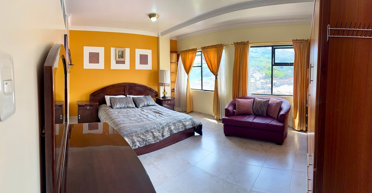 Bạn sẽ bị mê hoặc bởi phong cách trang trí phong cách của chỗ ở quyến rũ này. Các phòng thoải mái và độc lập với phòng tắm riêng, khu vực nghỉ ngơi ấm cúng nhìn ra Nevado Chimborazo hùng vĩ; nằm rất gần các khu hội chợ "Quinta Macají", nơi diễn ra tất cả các sự kiện nghệ thuật và văn hóa của thành phố Riobamba. Chúng tôi có các tiện nghi rộng rãi và thoải mái để tận hưởng kỳ ở của bạn.