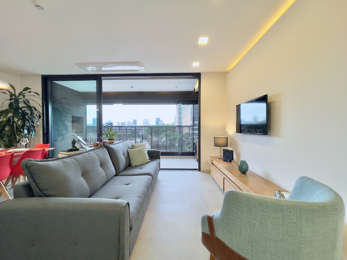 Căn hộ 50 m² phong cách nằm tại Bela Vista, có người gác cửa 24 giờ. 2 phòng ngủ (chỉ có 1 phòng có điều hòa và giường queen, phòng thứ hai khá nhỏ và có thể được sử dụng làm văn phòng, phù hợp với giường sofa đôi) và 1 phòng tắm. Với tầm nhìn tuyệt vời từ mọi cửa sổ, đây là một nơi tuyệt vời để làm việc và thư giãn. Bồn tắm nước nóng riêng ở ban công là một điểm tuyệt vời để tận hưởng khung cảnh thành phố. Lý tưởng cho các cặp đôi, chuyên gia hoặc gia đình nhỏ đang tìm kiếm sự thoải mái, tiện lợi và một trong những tầm nhìn đẹp nhất trong thành phố.