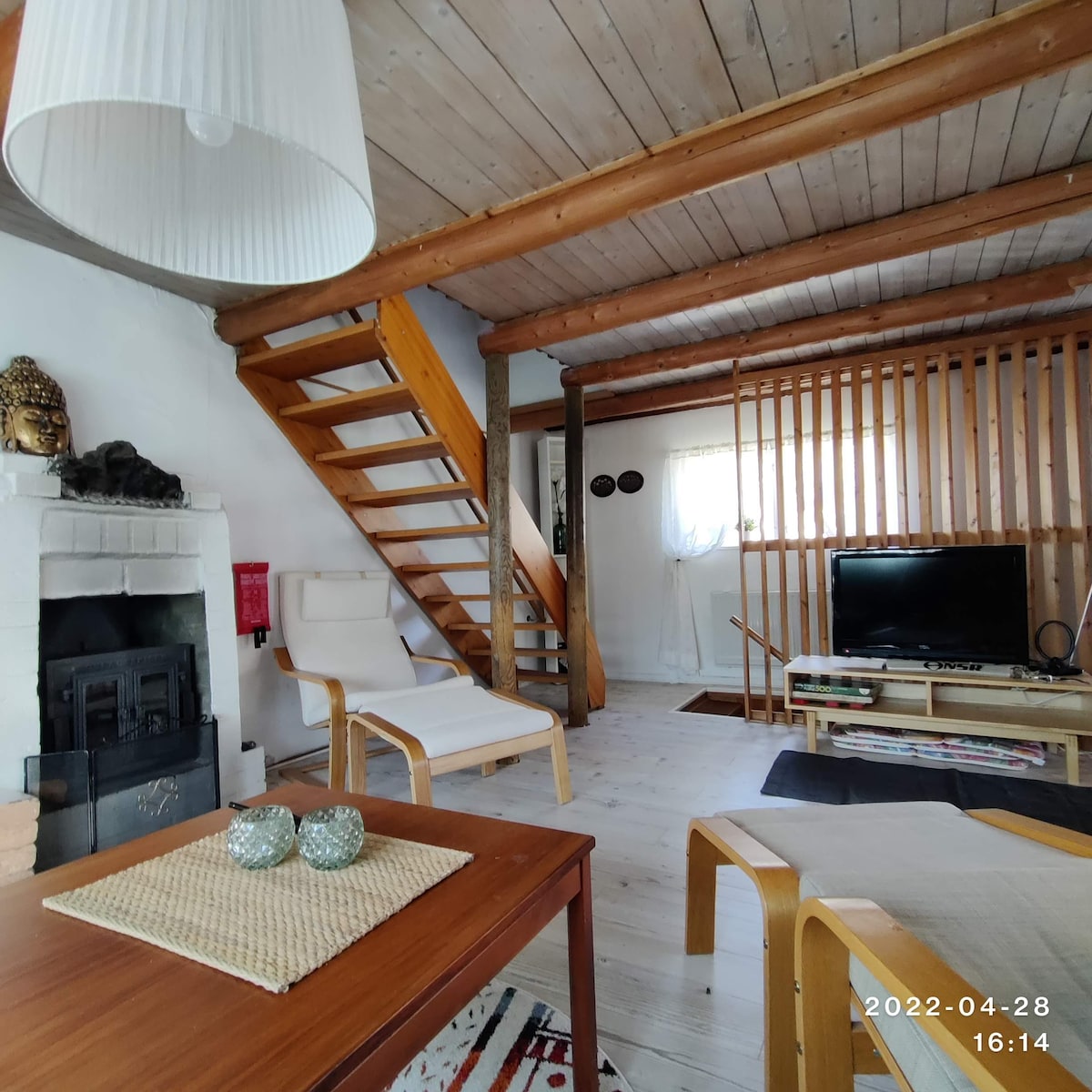 Ngôi nhà ấm cúng trong ngôi nhà gỗ nhỏ mới được cải tạo với khoảng cách đi bộ đến bãi biển dài 3 km, bồn tắm hồ lớn nhất Scandinavia Ngôi nhà nằm trên lô đất riêng rộng 1000 m2 mà bạn có thể tùy ý sử dụng! Khoảng cách đến bãi biển là 450 mét Chỗ ở Nhà rộng 40 m2 với sân thượng có kính rộng 20 m2 Nhà khách trong khuôn viên 20m2 Vệ sinh chăm sóc người thuê nhà, có sẵn thiết bị cho việc này Người thuê nhà mang theo ga trải giường và khăn tắm 2 chỗ đỗ xe trong khuôn viên Chủ sở hữu tòa nhà có mặt tại địa điểm nhận phòng để biết thông tin và các hoạt động