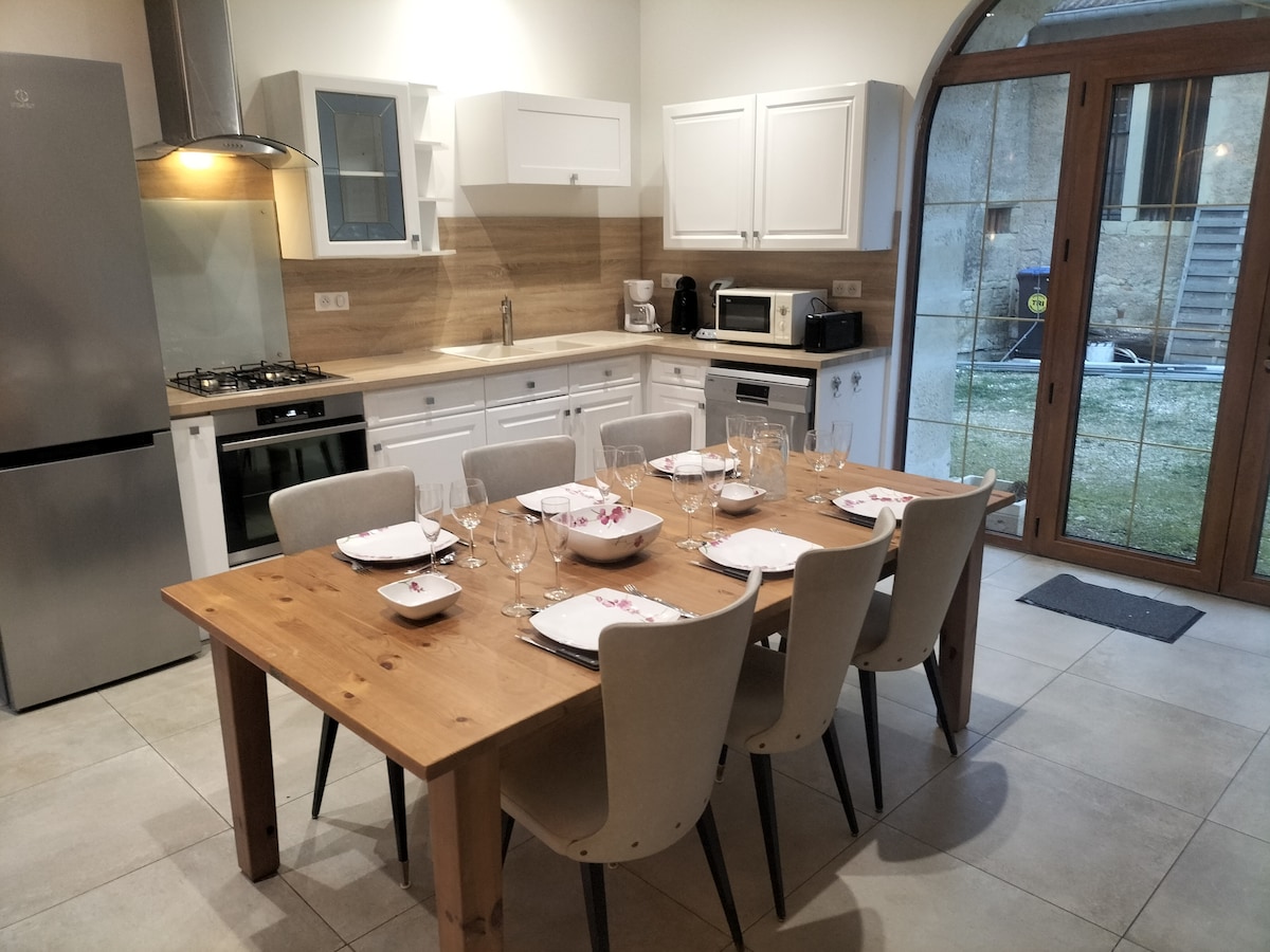 Căn hộ được cải tạo đầy đủ tiện nghi với lối vào riêng biệt vào một ngôi nhà đá xinh đẹp. Căn hộ mới vào mùa hè . Giường 160break} trong phòng ngủ /giường sofa 140break} trong phòng khách. Bếp được trang bị đầy đủ tiện nghi (lò vi sóng, bếp từ, tủ lạnh, máy rửa chén). Senseo /máy nướng bánh mì/ấm đun nước. Phòng tắm (vòi sen), máy sấy tóc. Internet Wifi 2 TV thông minh Cách Besançon 30 km Cách Gray 20 km Cách Dole 25 km