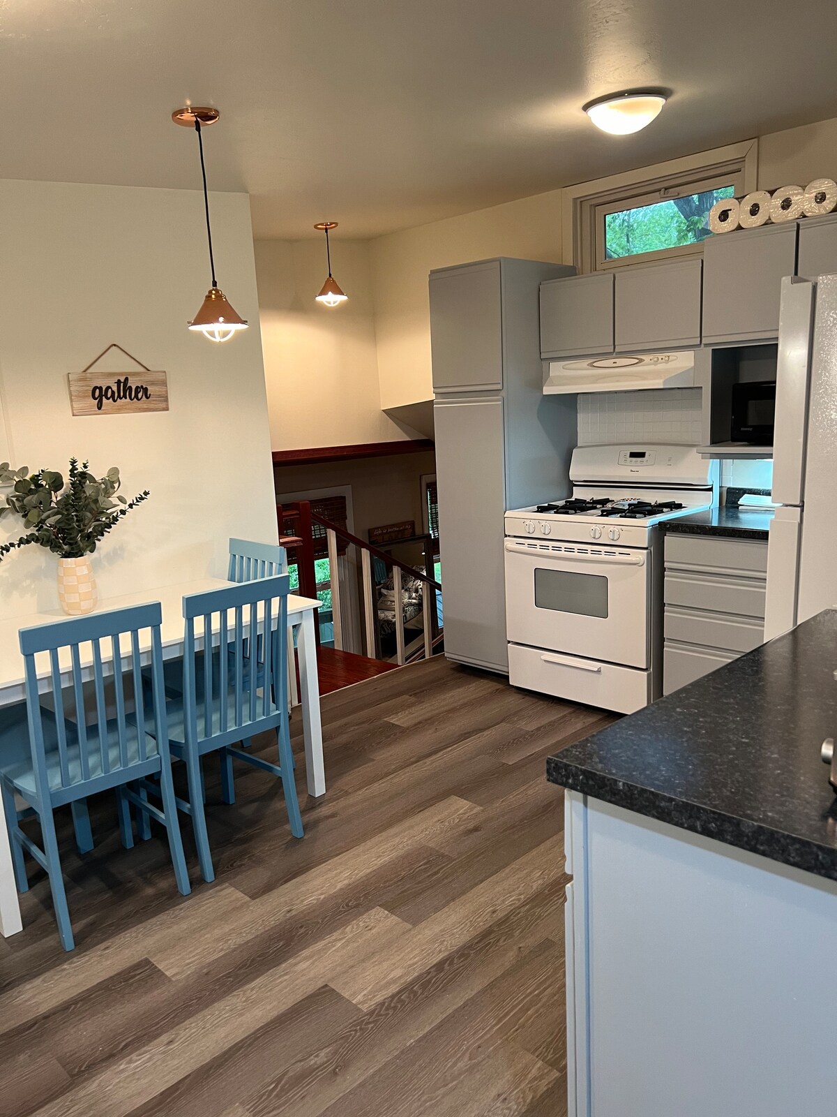 With 10-11’ ceilings and 1000 sf, this sunny apartment is the second floor of an 1860’s log cabin. Completely updated with new floors, paint, fixtures and more, it’s a perfect retreat from the city. Explore the adjoining 500 acres of state forest, with public lake and boat launch across the street for fishing and paddling. The adjacent trail leads right the Parnell Segment of the Ice Age trail and Mauthe Lake State Park.